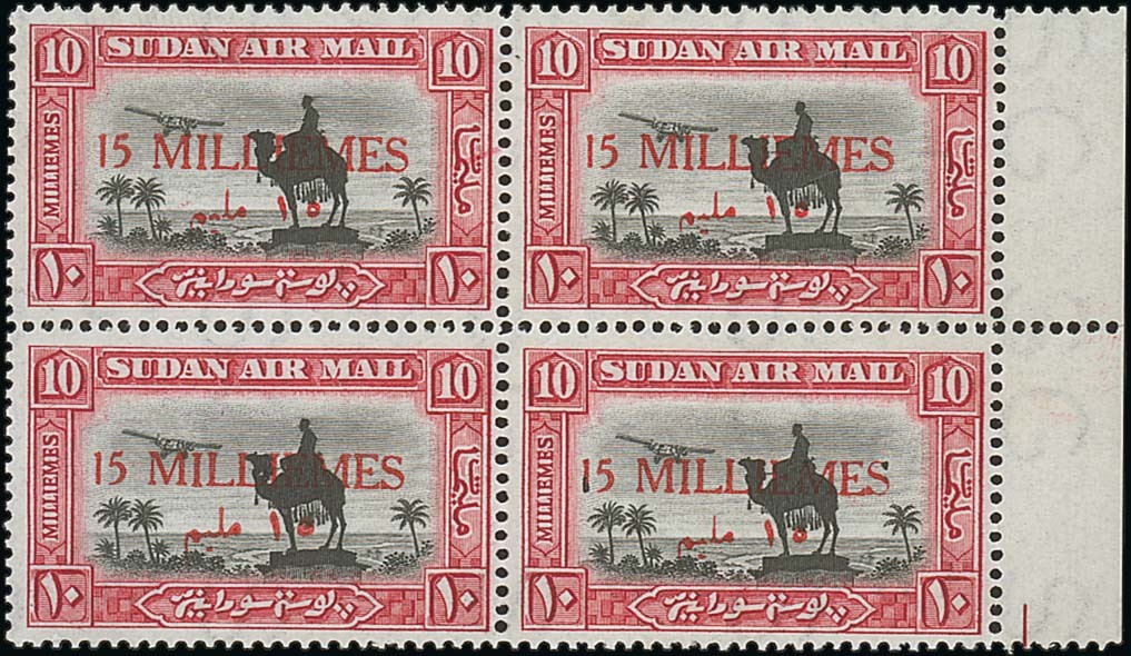 15m. on 10m. black and carmine marginal block of four from the right of the sheet, fine unmounted mint. B.P.A. Certificate (2011). Photo
