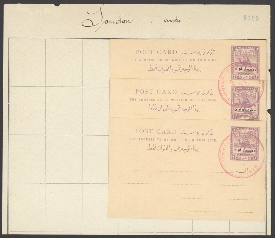 1907 2m. on 3m. lilac, three examples overlapping one another and affixed to piece cancelled with strikes of the "