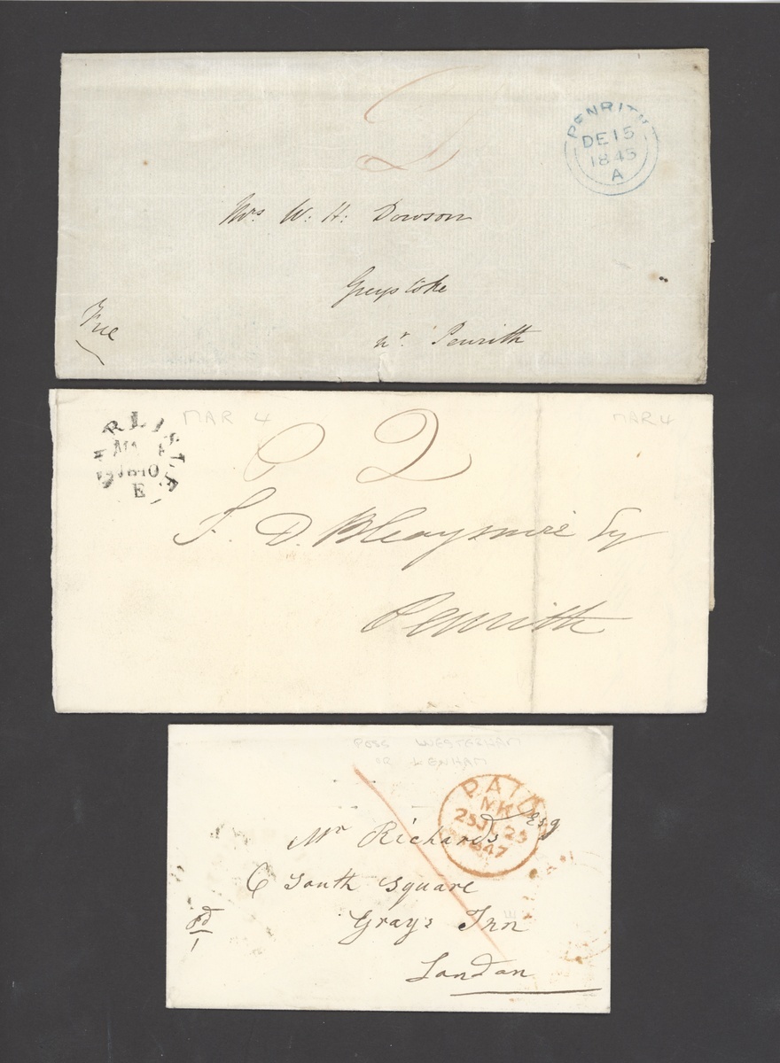 1838-52, selection of thirty-one items, including Sunday "Scallop", "Free", undated circles, uniform Penny and London 2d. Post markings, etc., chiefly fine
