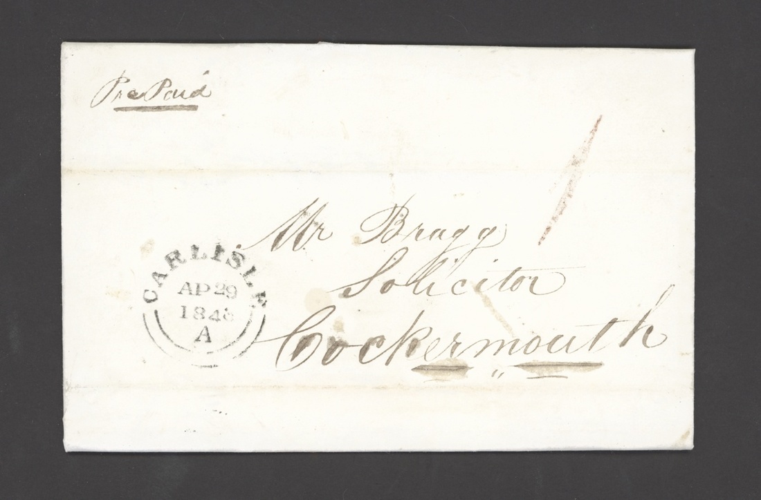 1843 (29 April) entire letter to Cockermouth with a good strike of the rare red Chester "1" handstamp, Carlisle c.d.s. alongside; horizontal filing fold crosses the "1". Fine