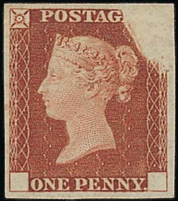 1840 1d. Rainbow trial, State 2, in reddish-brown on white wove paper; fine. Specialised DP20 from £4,500. Photo
