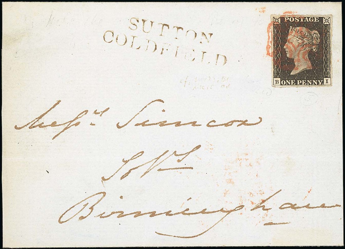 BI good to large margins, delicate impression, tied by a red Maltese Cross cancellation to wrapper (no side flaps), dated 1840 (24 Nov.) to Birmingham,