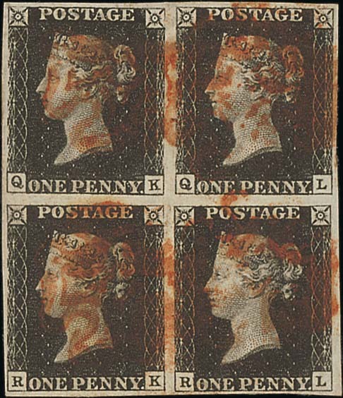 QK-RL block of four with good to very large margins all round, red Maltese Cross cancellations minor wrinkling mostly affecting QL, fine and a recently discovered block. Specialised AS23, £25,000. Photo