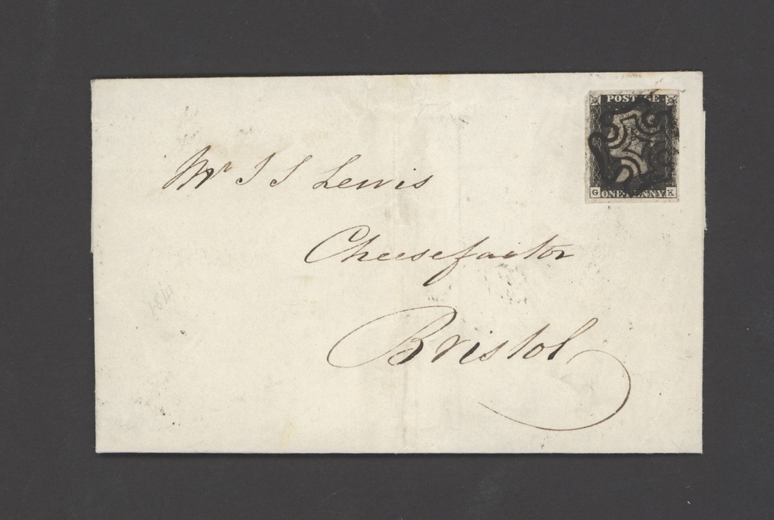 GK large margins, superb central black Maltese Cross cancellation, on entire letter, dated 5 March 1841, from Barnstaple to Bristol; the stamp tied "through" the cover, light vertical filing fold well clear of the adhesive; fine
