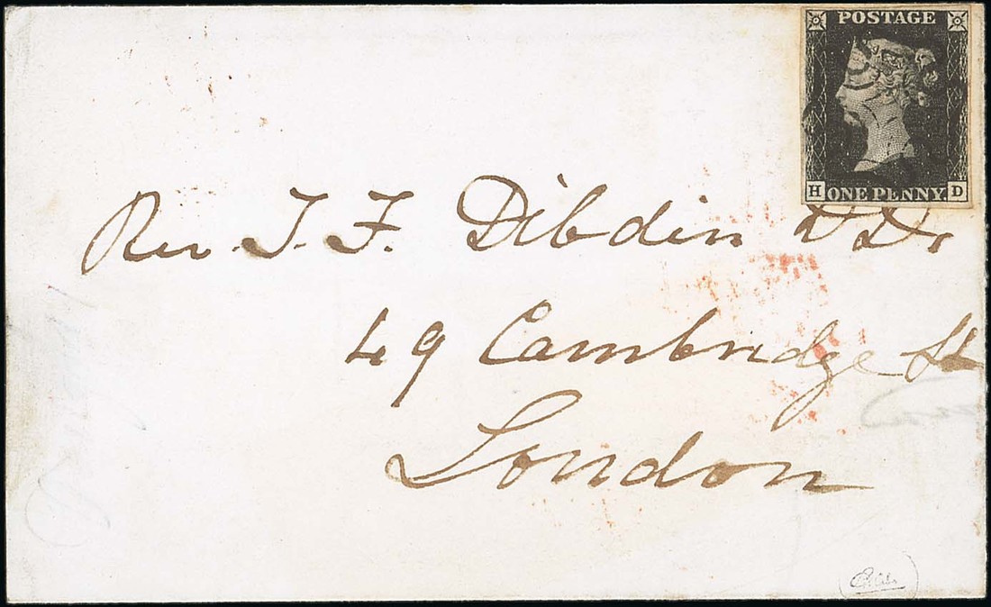 HD good margins, tied by crisp black Maltese Cross to entire (no side flaps) to London dated 19 April 1841; fine and attractive. Photo