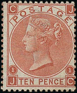 10d. red-brown Plate 1: JC, unused with some original gum, fresh colour, centred to upper right, fine. S.G. 112, £3,600. Photo