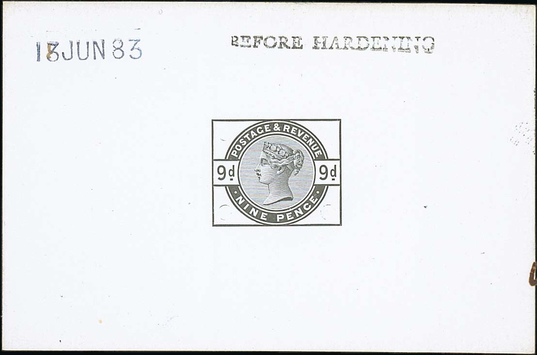 9d. die proof without corner letters, in black on glazed card (92x60mm.), marked