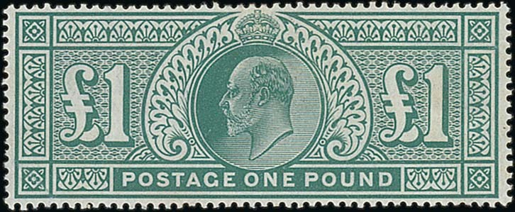 £1 dull blue-green, unused with original gum, one or two tiny wrinkles as is usual for this, well-centred and of good colour, fine. S.G. 266, £2,000. Photo