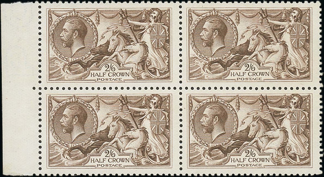2/6d. pale brown, block of four from the left of the sheet, original gum with the lower pair remaining unmounted mint; fine and scarce. S.G. 415a, £1,030. Photo