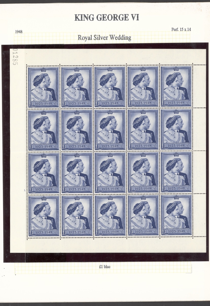1948 Silver Wedding £1 blue, complete sheet of twenty (5x4), unmounted mint, some light wrinkles, fine. S.G. 494, £800+