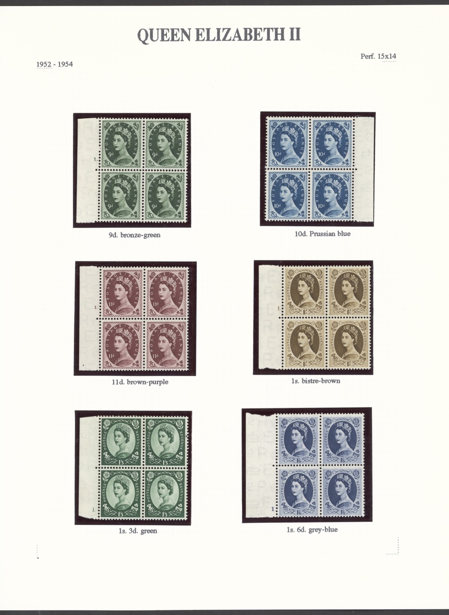 1952-54 ½d. to 1/6d. set in blocks of four,1d. "Shamrock" flaw contained in a block of six, 1953 Coronation set in blocks of four, Postage Due 1954-55 set, 4d. imperf. pair (mounted), 1959-93 ½d. to £1, chiefly fine with most unmounted mint
