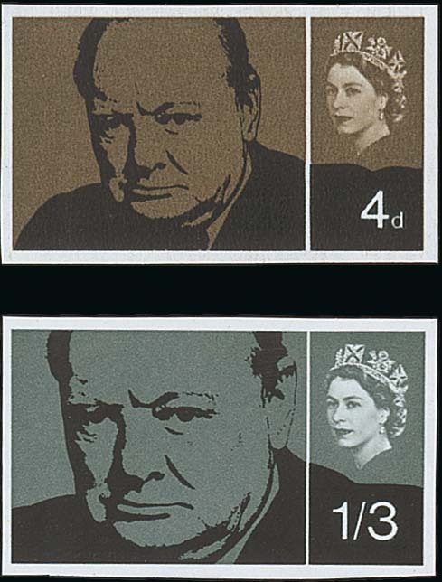 1965 Churchill 4d. and 1/3d. ordinary, imperforate imprimaturs with