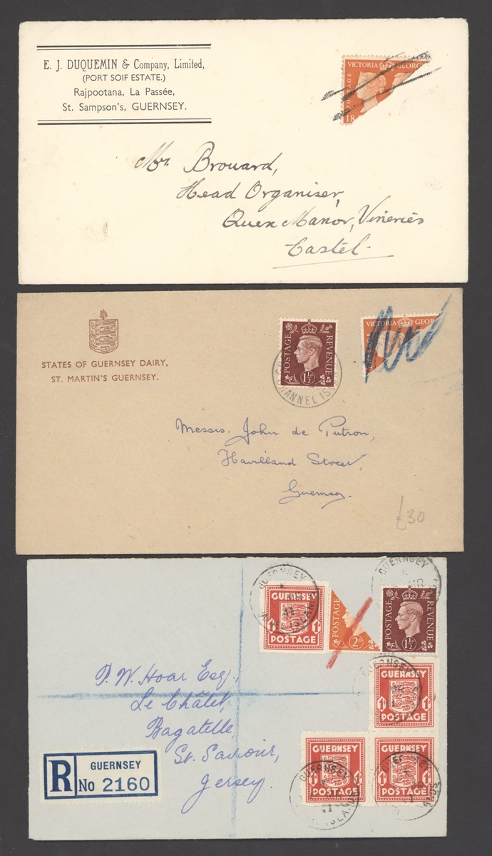 1941 envelopes (6, one registered) and a wrapper, three with the bisect in combination with other values, four with bisect crossed through as Inadmissible and two with "