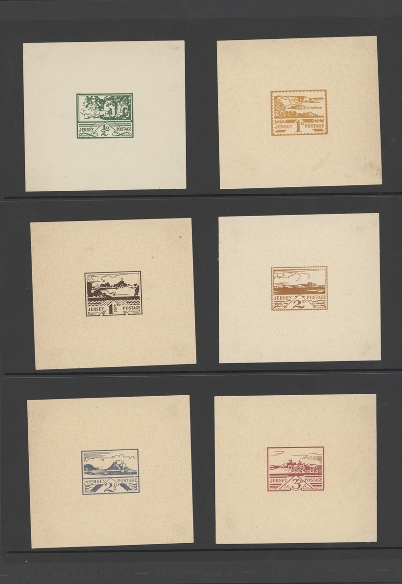 ½d. to 3d. set of six in close to issued colours, each on toned wove paper (77x75mm.); each with small fixative marks in the four corners causing small, thins, otherwise sound