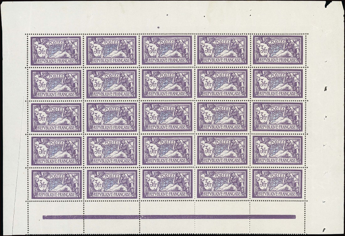 3f. deep violet and blue, complete pane of twenty-five (5x5), unmounted mint, hinged in the margins only, well centred; there is a light vertical bend affecting the first row and a few split perfs. Fine. La Postale Certificate (2016). Spink Maury 206, €1,625+