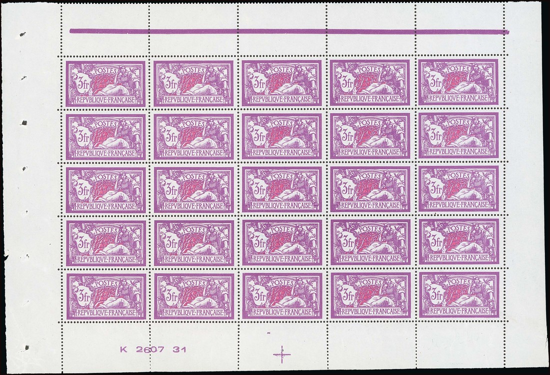 3f. deep mauve and carmine, complete sheet of twenty-five (5x5), showing Croix de rèpere and numerals in the margin at foot, unmounted mint, fresh and well centred. La Postal Certificate (2016), Spink Maury 240, €4,500+