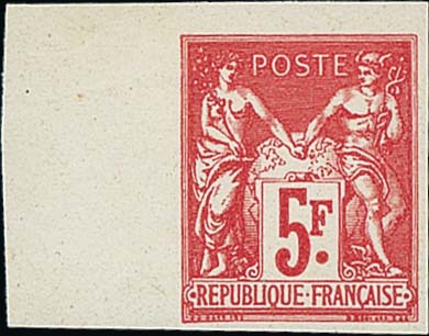 5f. red, imperforate single, unused without gum; fine. Spink Maury €1,600