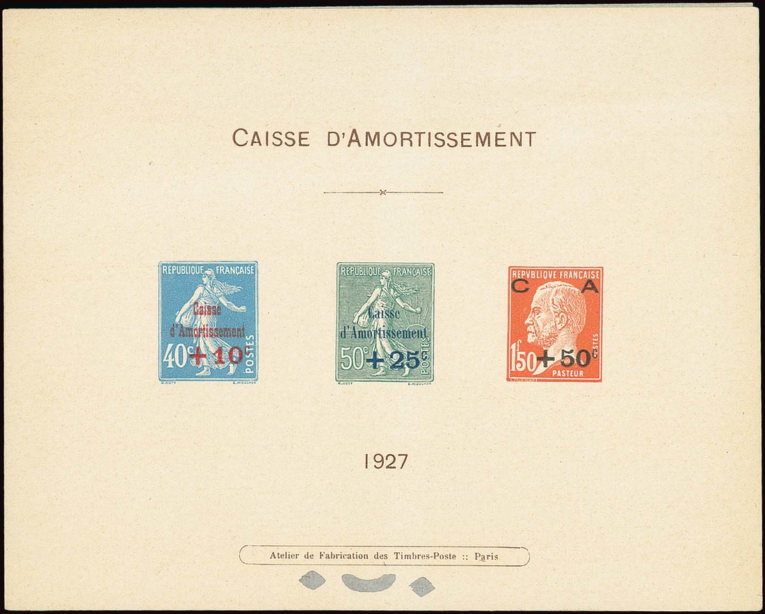 40c. + 10c., 50c. + 25c., 1f. 50 + 50c., Collective Proof; fine and rare. Spink Maury €1,100