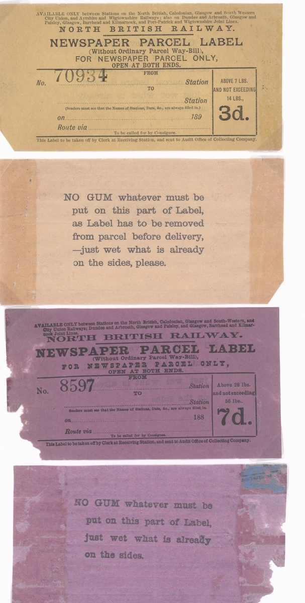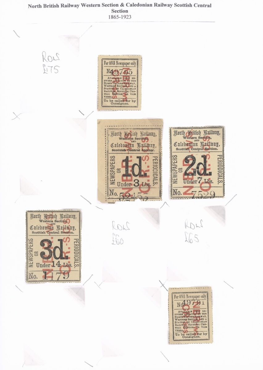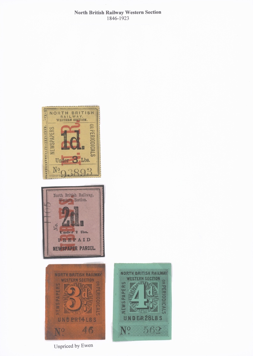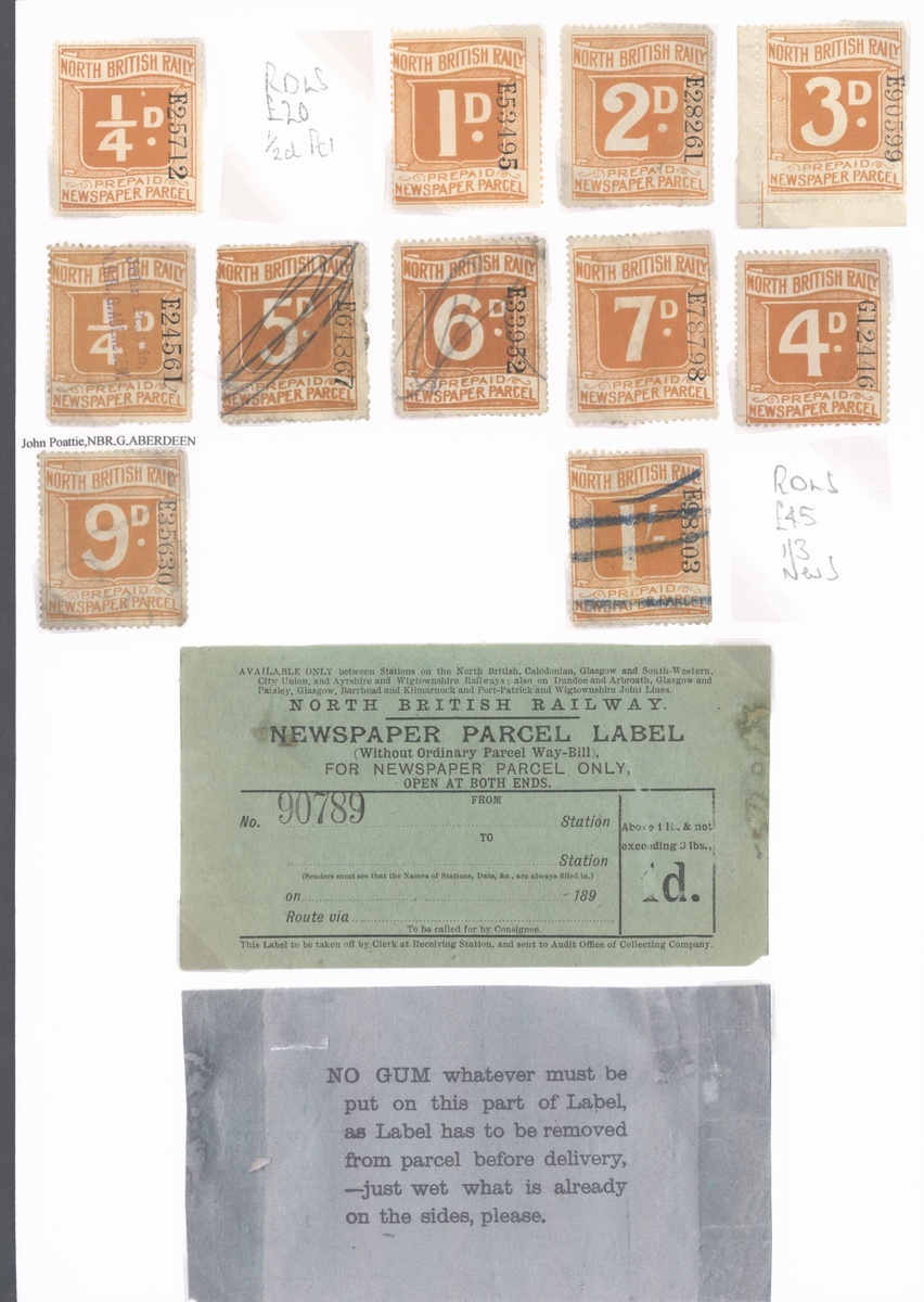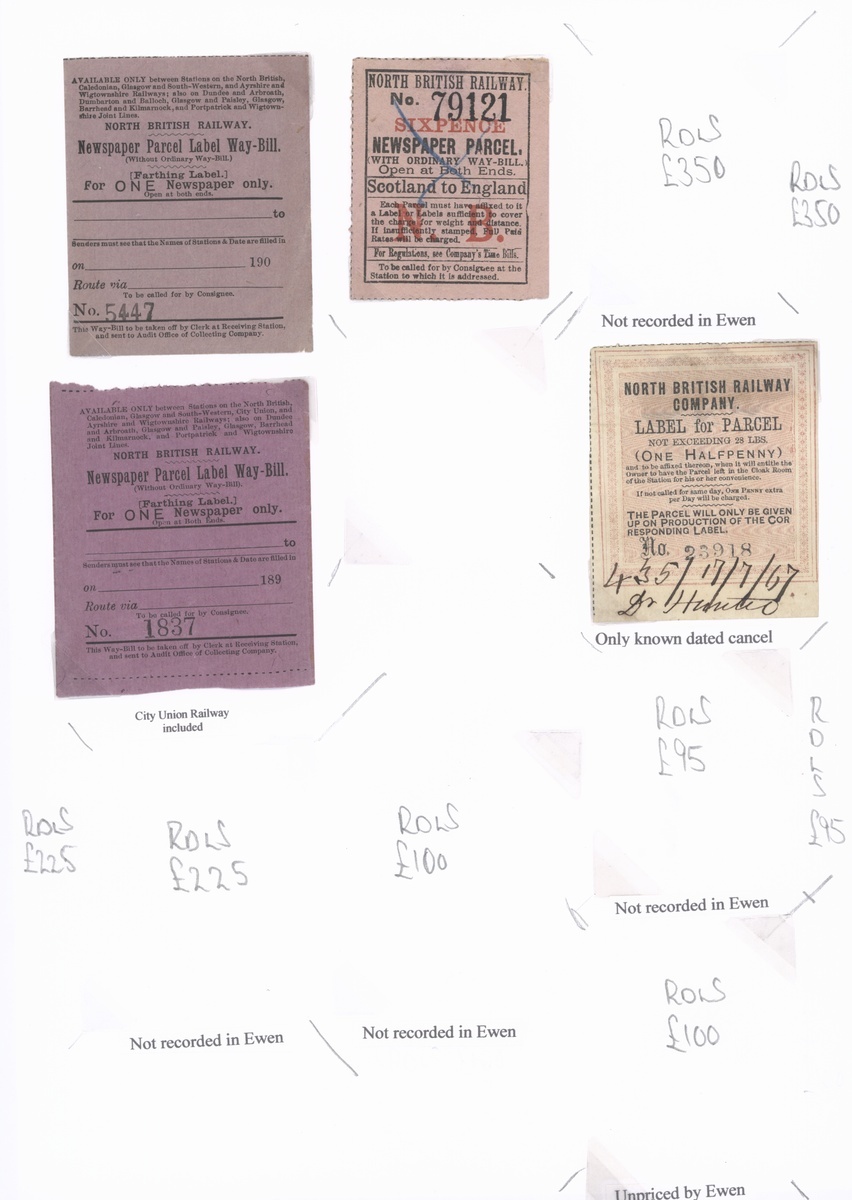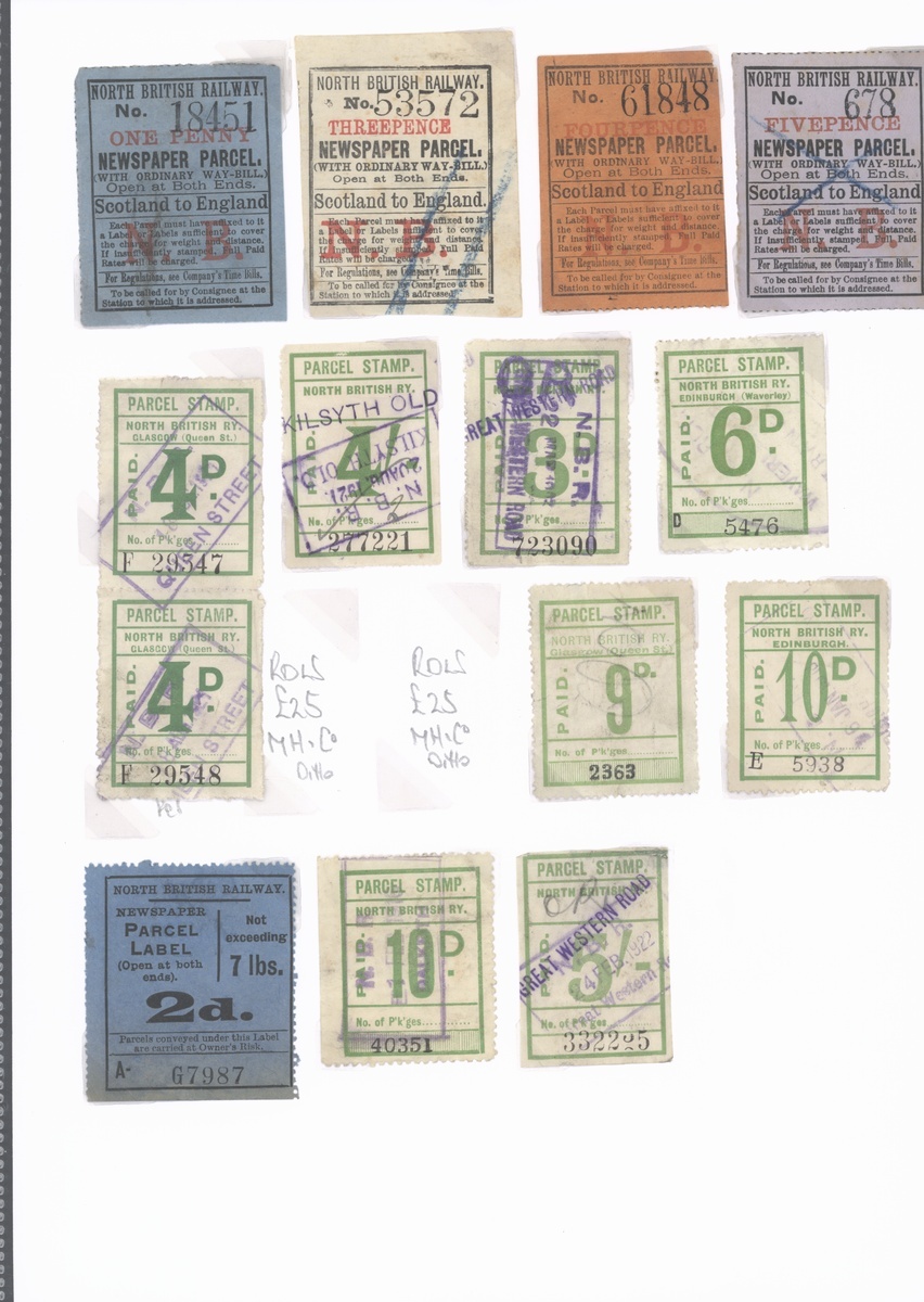 A superb selection comprising mostly newspaper / parcel stamps (c.30) including 'Prepaid Newspaper Parcel' (a) 2d. under 7lbs part original gum, 'Newspapers or Periodicals' (a) 1d. under 3lbs part original gum, (b) 1d. (torn), 2d. (unused) and 3d. part original gum, scarce, design VI 3d. under 14lbs a little torn, quite soiled but unrecorded and 4d. under 28lbs fine, both part original gum and scarce, design VII 'Newspaper Parcel / Scotland to England' 6d. used, 'G series' range including 9d. and 1/- used (both unrecorded), also large format 1d., 3d. and 7d. (torn) parcel labels unused, also letter stamps (5) including 4d. handstamped '