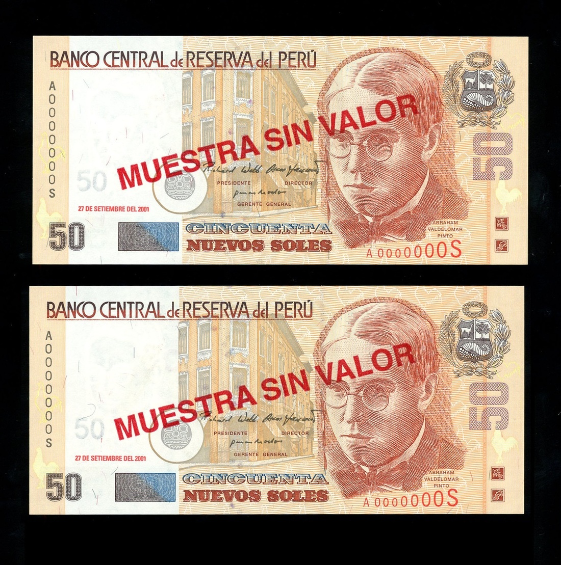 (x) Banco Central de Reserva del Peru, specimen 50 nuevos soles (2), 2001, (Pick 154s), uncirculated (2)
