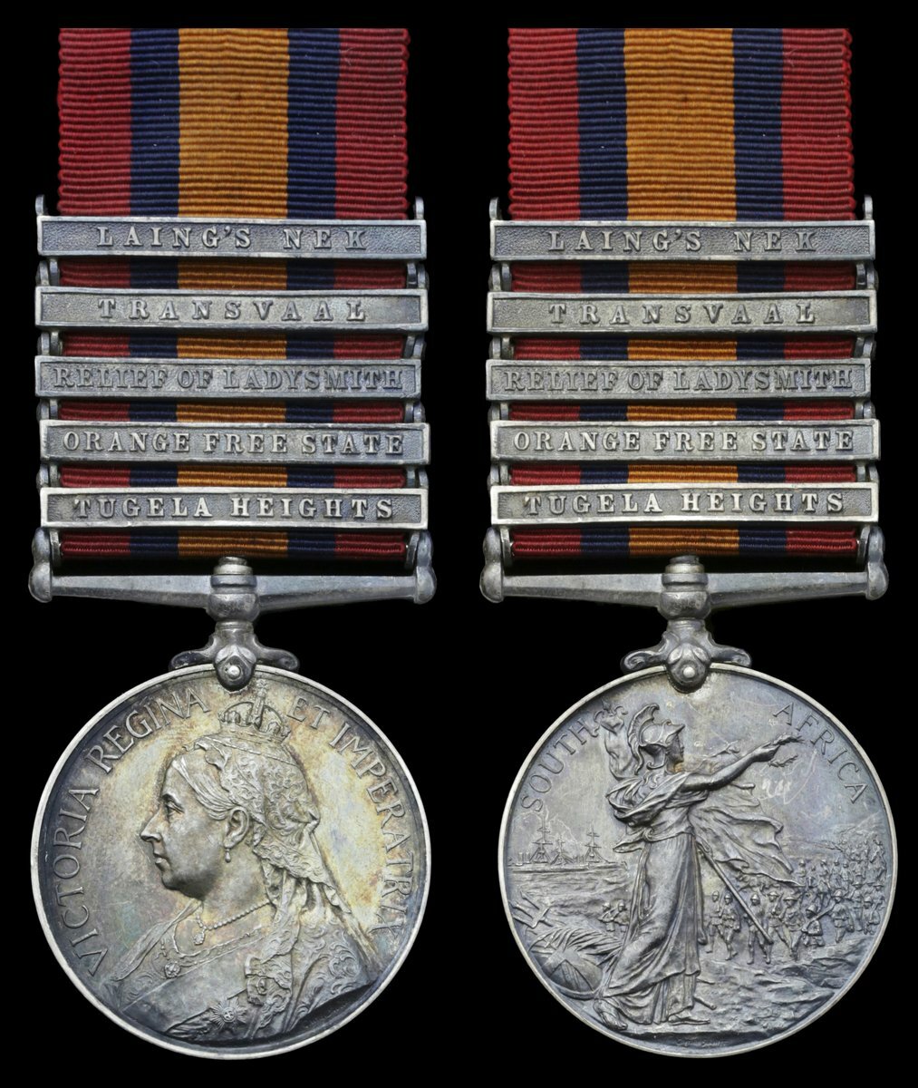Queen's South Africa 1899-1902, 5 clasps, Tugela Heights, Orange Free State, Relief of Ladysmith, Tranvaal, Laing's Nek (3493 Pte. A. Howarth. S. Lanc: Regt.), nearly extremely fine