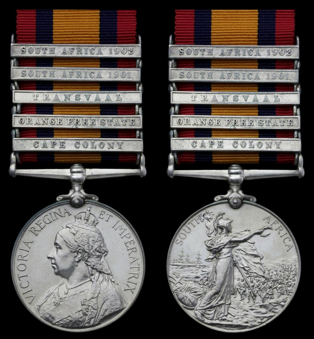 (x) Queen's South Africa 1899-1902, 5 clasps, Cape Colony, Orange Free State, Transvaal, South Africa 1901, South Africa 1902 (3492 Pte. A. Jowett. 7th Hussars), unofficial rivets between state and date clasps, good very fine