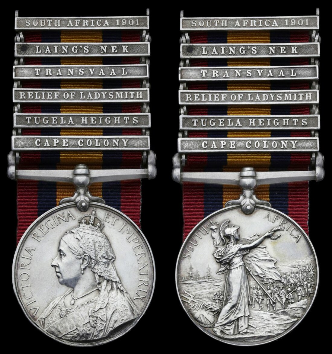 (x) Queen's South Africa 1899-1902, 6 clasps, Cape Colony, Tugela Heights, Relief of Ladysmith, Transvaal, Laing's Nek, South Africa 1901 (1567 Pte. H. Tidy, Rifle Brigade.), unofficial rivets between state and date clasp, nearly extremely fine