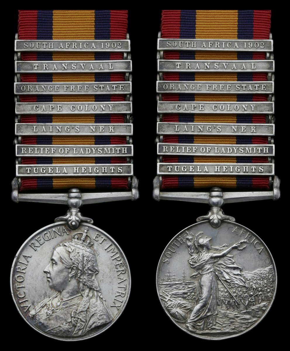 Queen's South Africa 1899-1902, 7 clasps, Tugela Heights, Relief of Ladysmith, Laing's Nek, Cape Colony, Orange Free State, Transvaal, South Africa 1902 (3479 Pte. B. Spires, 2nd E. Surrey Regt.), unofficial rivets between third and fourth clasps, surname officially re-impressed, very fine