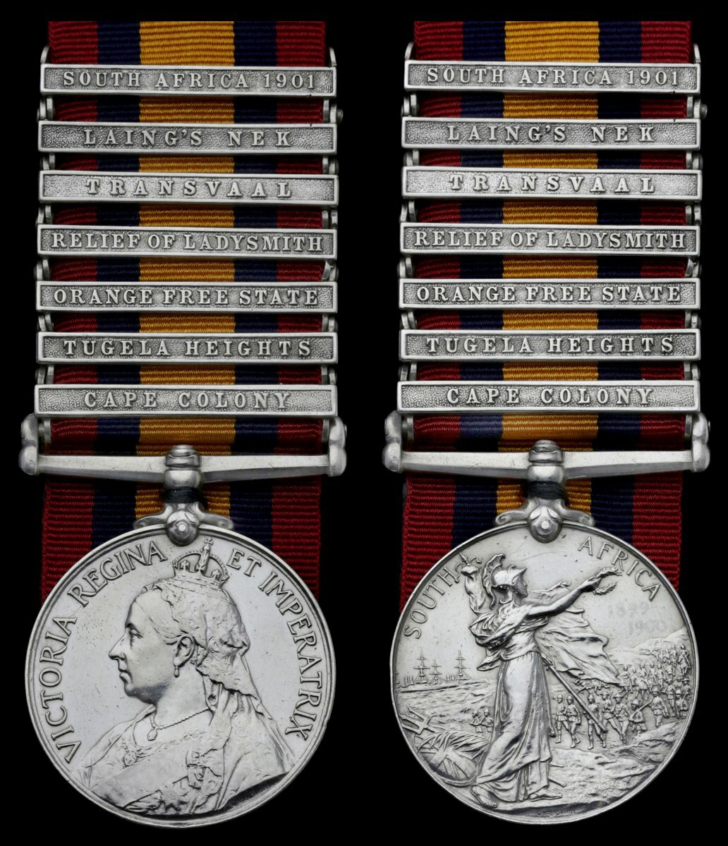 (x) Queen's South Africa 1899-1902, 7 clasps, Cape Colony, Tugela Heights, Orange Free State, Relief of Ladysmith, Transvaal, Laing's Nek, South Africa 1901 (1101 Pte. F. Ford, Rifle Brigade.), unofficial rivets between state and date clasps, good very fine
