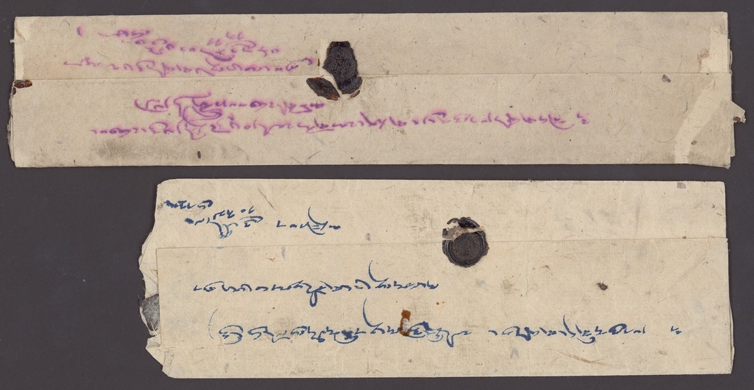 Two scarf letters, wrappers only, privately carried, 220x74mm and 273x55mm, each with black wax seal with the address in ink on the same side as the seal. (2 covers)