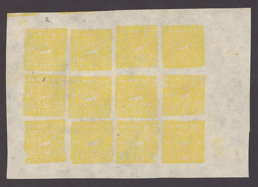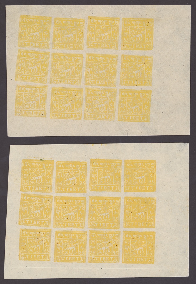 ½tr. setting 4, a group of unused sheets of twelve in different shades with pale chrome, deep chrome (mentioned in Waterfall's text) and canary-yellow (referred in text as 'sickly'). Waterfall 122, 124. (3 sheets)