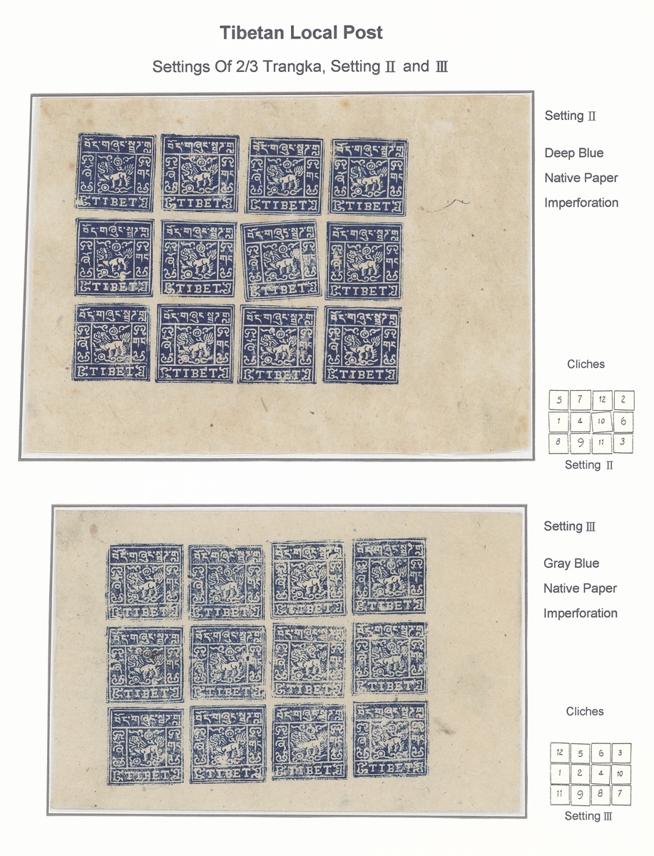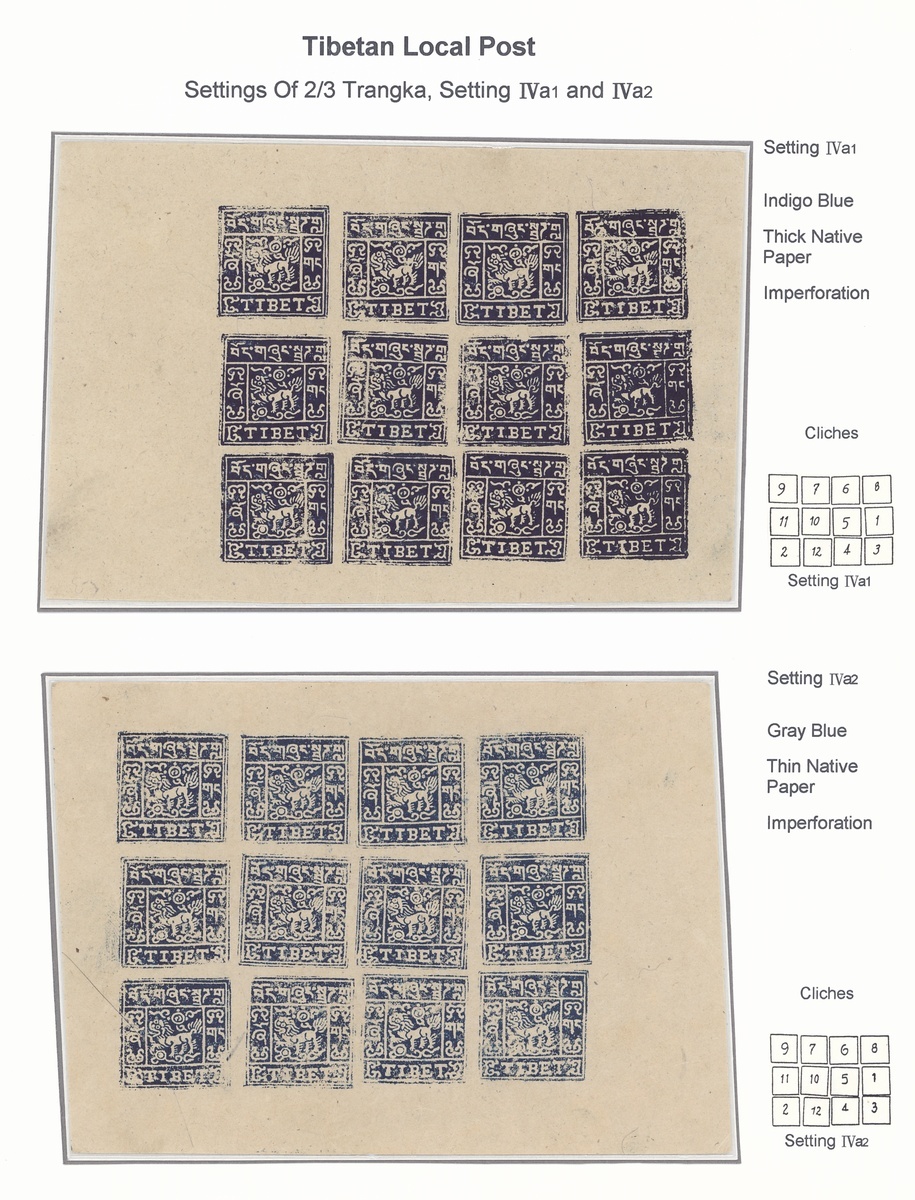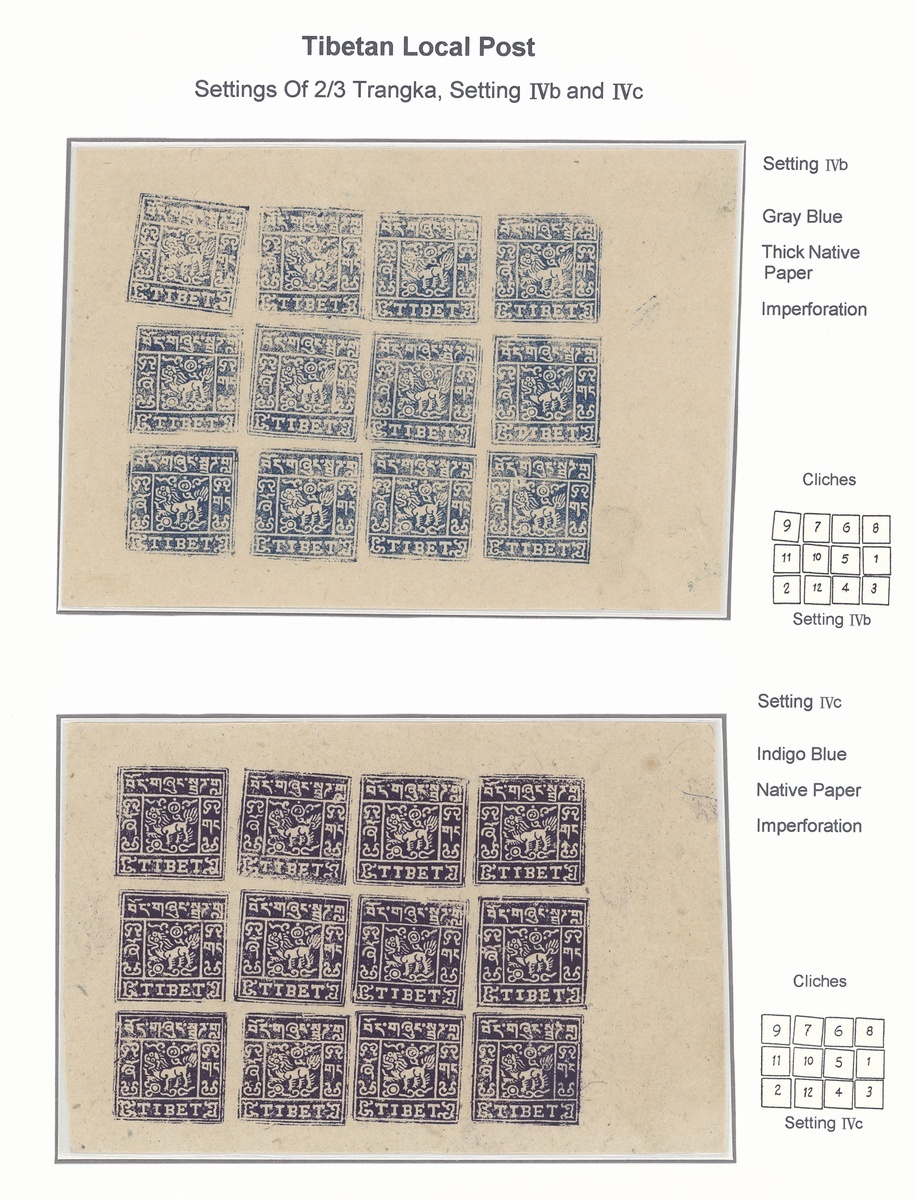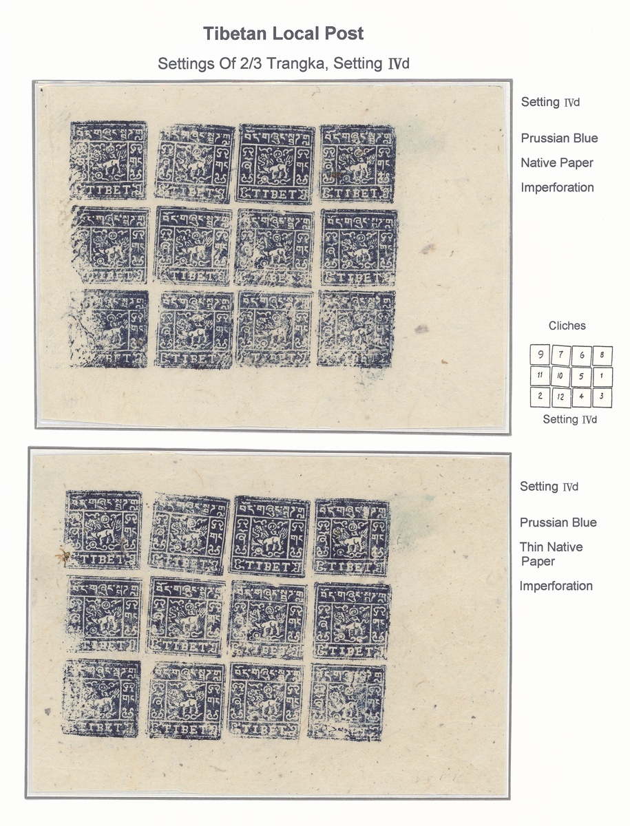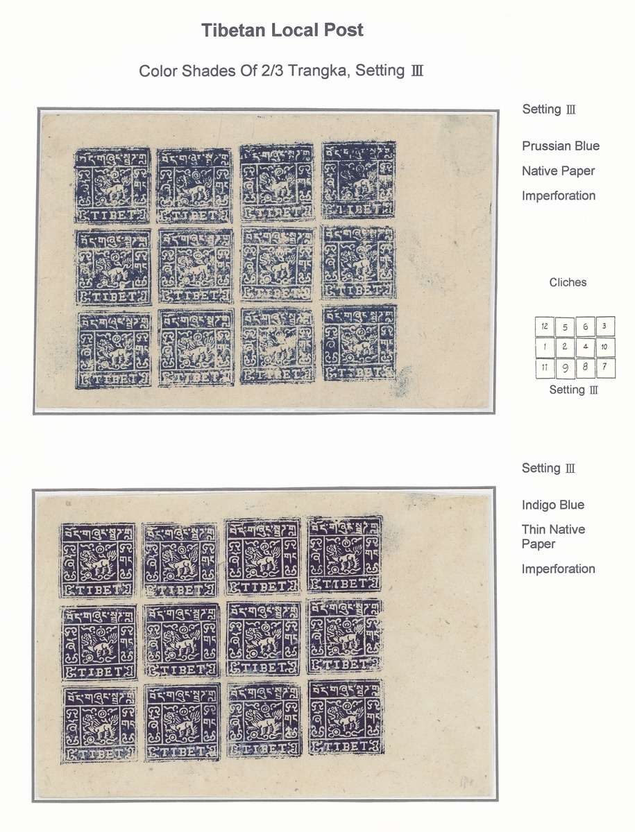 2/3 tr. a collection of unused sheets of twelve on pages with setting 2 in dark blue, setting 3 in grey-blue and shades of indigo (2), settings 4a.1 and 4a.2 in indigo-blue and grey-blue, 4b in a light grey-blue and indigo plus 4d in dark blue (2). Generally good to fine. A useful group. (10 sheets)