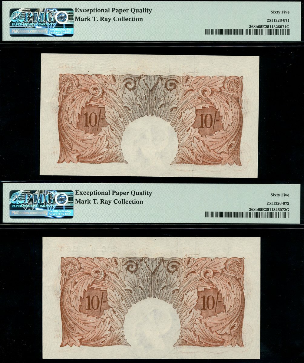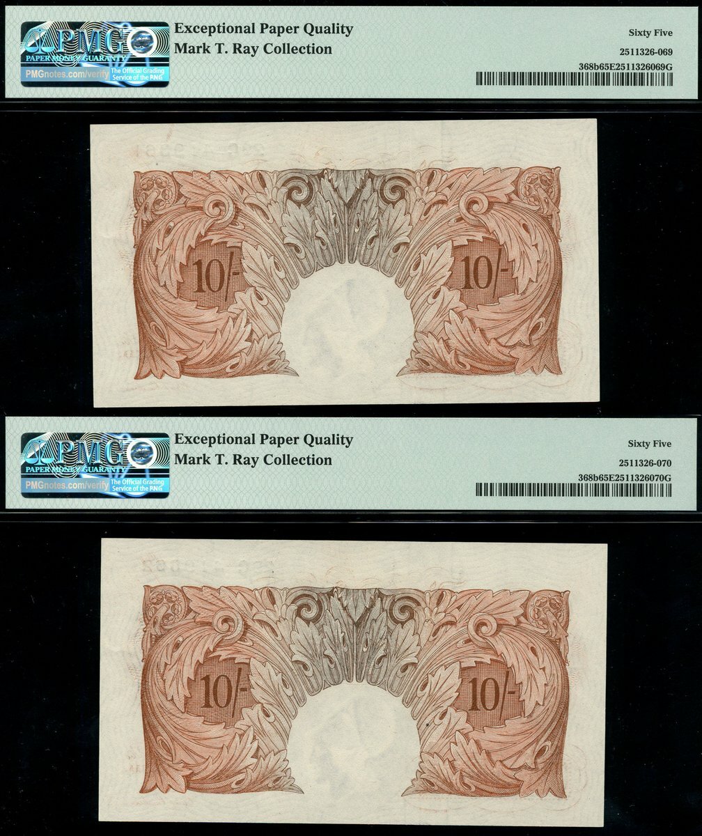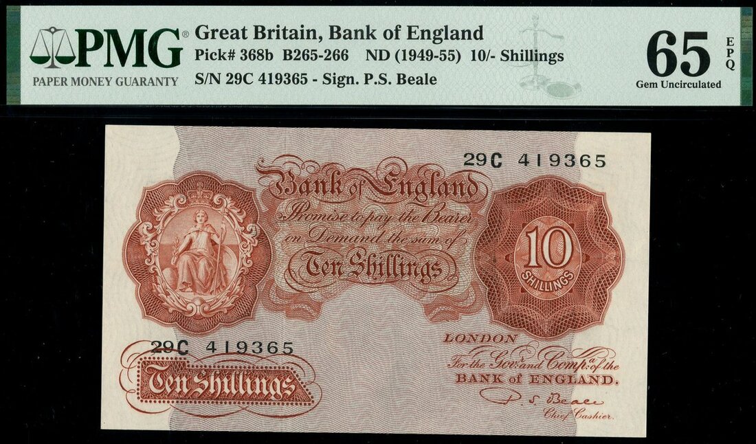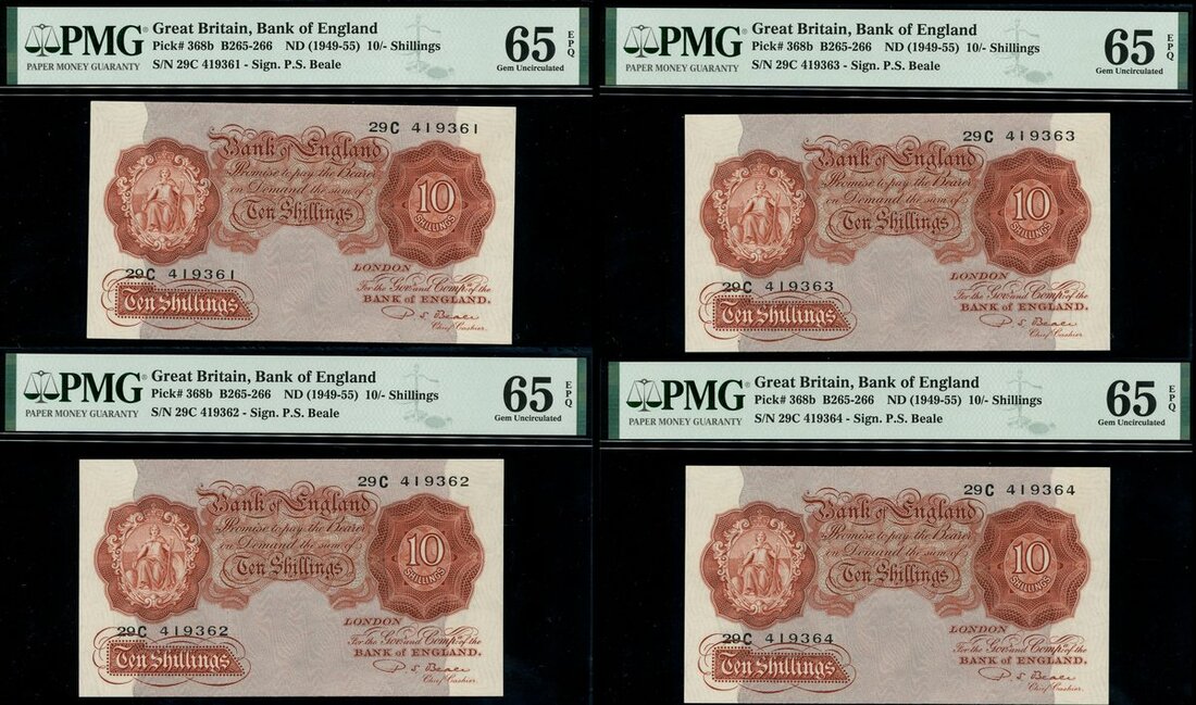 Bank of England, Percival Spencer Beale (1949-1955), consecutive run of 10 shillings (5), ND (1950), serial numbers 29C 419361/2/3/4/5, brown, ornate crowned vignette of Britannia at left, value at right, reverse brown, value at left and right