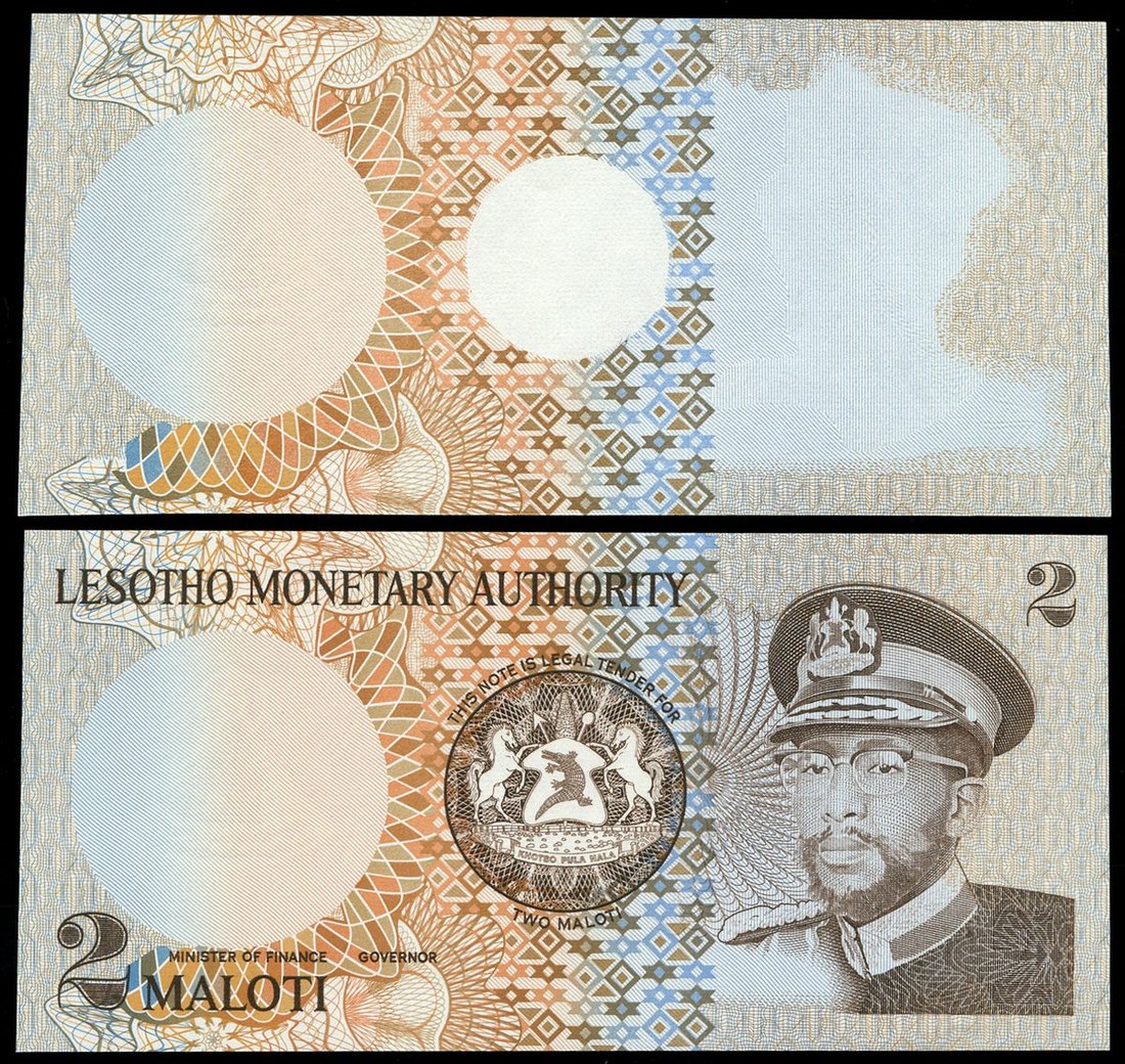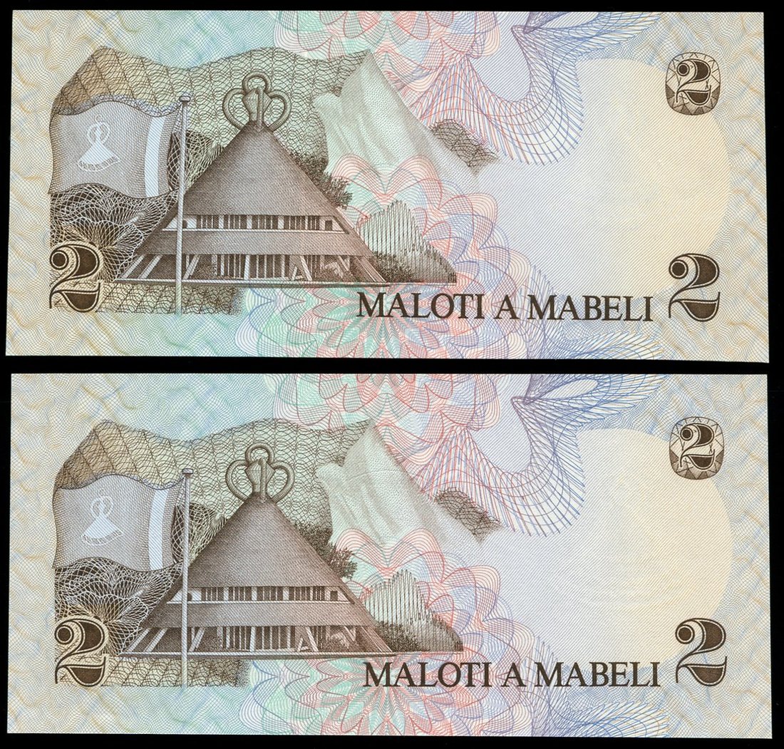 (x) Lesotho Monetary Authority, progressive proofs of 2 maloti (2), ND (1979), includes one fully printed proof missing signature, dates and serial number, one proof without overprint of arms and portrait of King Moshoeshoe II,