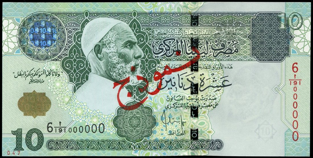 Central Bank of Libya, specimen 10 dinars, ND 2008, (Pick 70s, TBB B533s), red Arabic SPECIMEN overprint at obverse and reverse, uncirculated