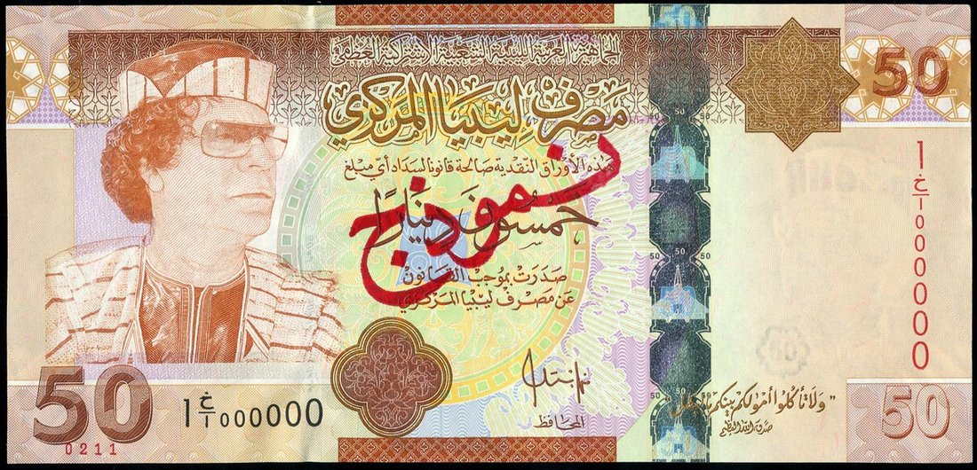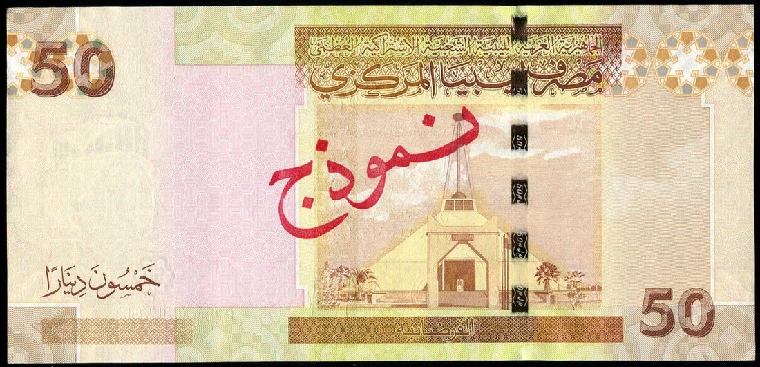 Central Bank of Libya, specimen 50 dinars, ND (2008), (Pick 75s, TBB B539s), red Arabic SPECIMEN at obverse and reverse, uncirculated, scarce