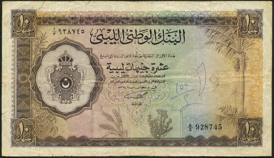 National Bank of Libya, 10 pounds, 1955, serial number 928745, (Pick 22, TBB B304), fine