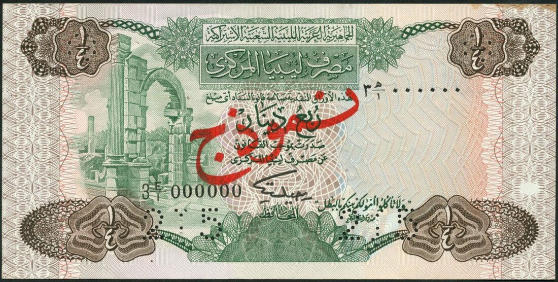 Central Bank of Libya, specimen 1/4 dinar, ND (1984), (Pick 47s, TBB B511s), stain at top right corner, about uncirculated