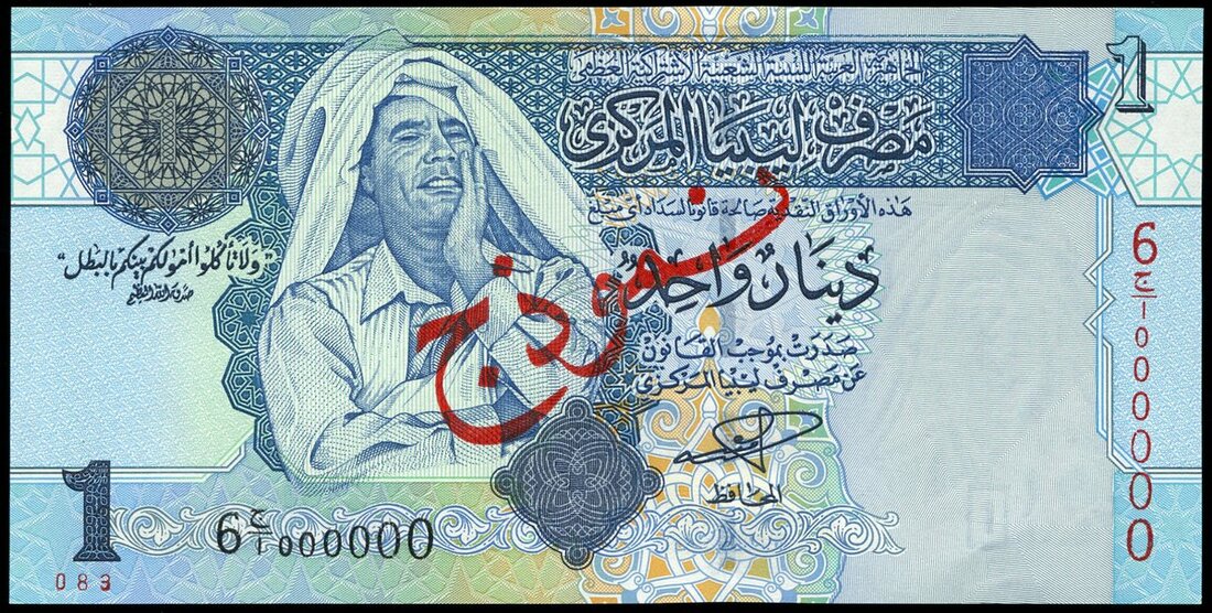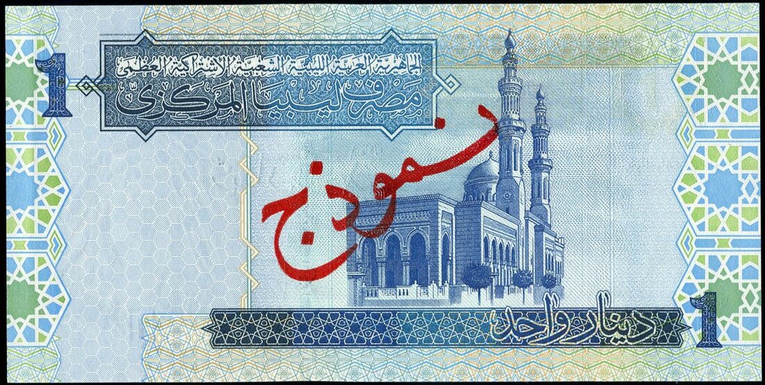 Central Bank of Libya, specimen 1 dinar, ND 2004, (Pick 68s, TBB B531s), red Arabic SPECIMEN at obverse and reverse, uncirculated