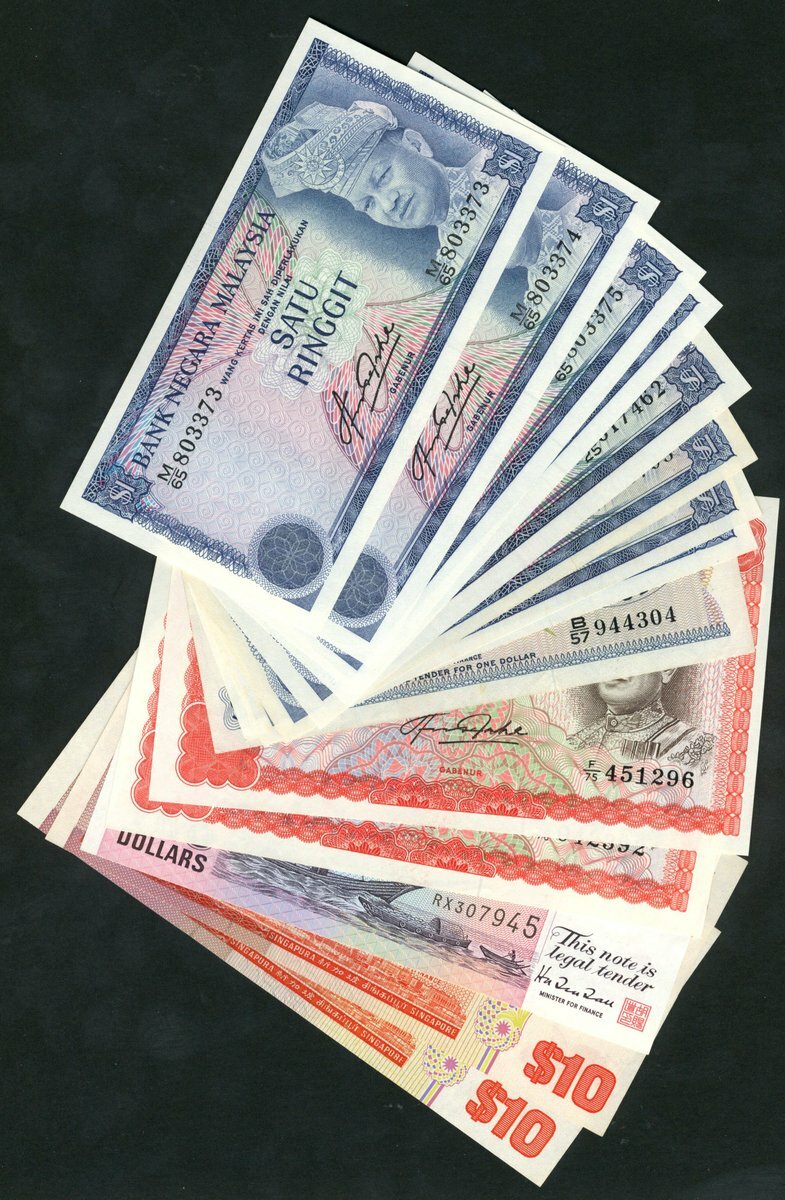 (x) Bank Negara Malaysia, $1 (8), $10 (2), ND (1976-81), also Singapore, $1, 1971, $10 (2), 1976, $2, 1997,