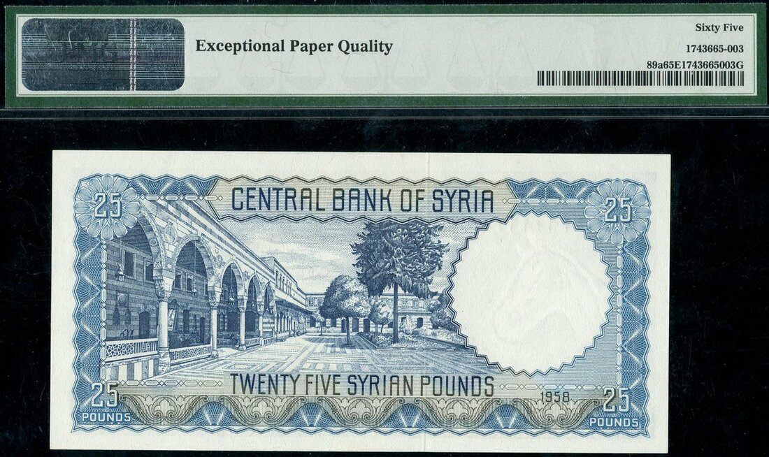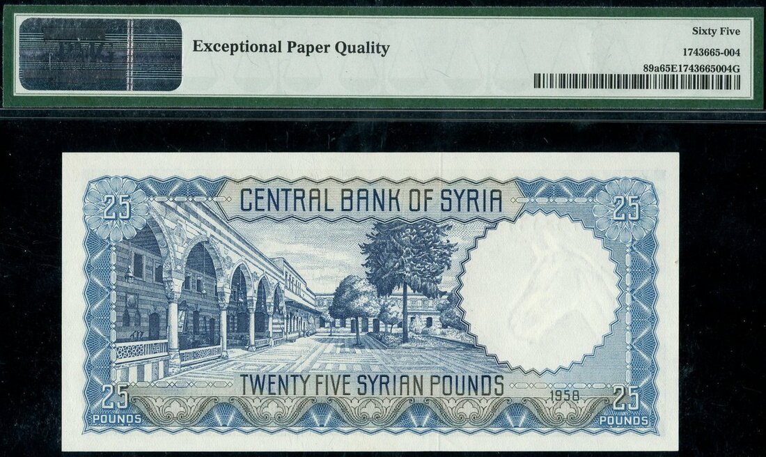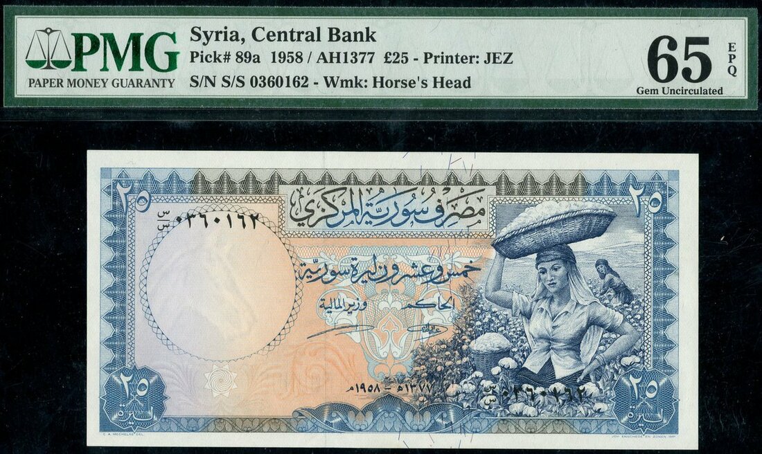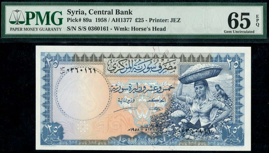 (x) Central Bank of Syria, consecutive pair of £25, 1958, serial numbers S/S 0360161/162, blue, women at right,
