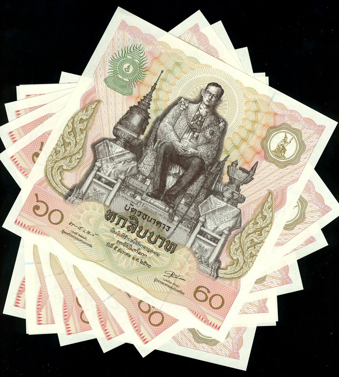 Government of Thailand, commemorative 60 baht (7), ND (1987), (Pick 93, TBB B103a), issued to commemorate 60th birthday of Rama IX's fifth cycle (60th) birthday on 5th December 1987, large square note with unusual denomination