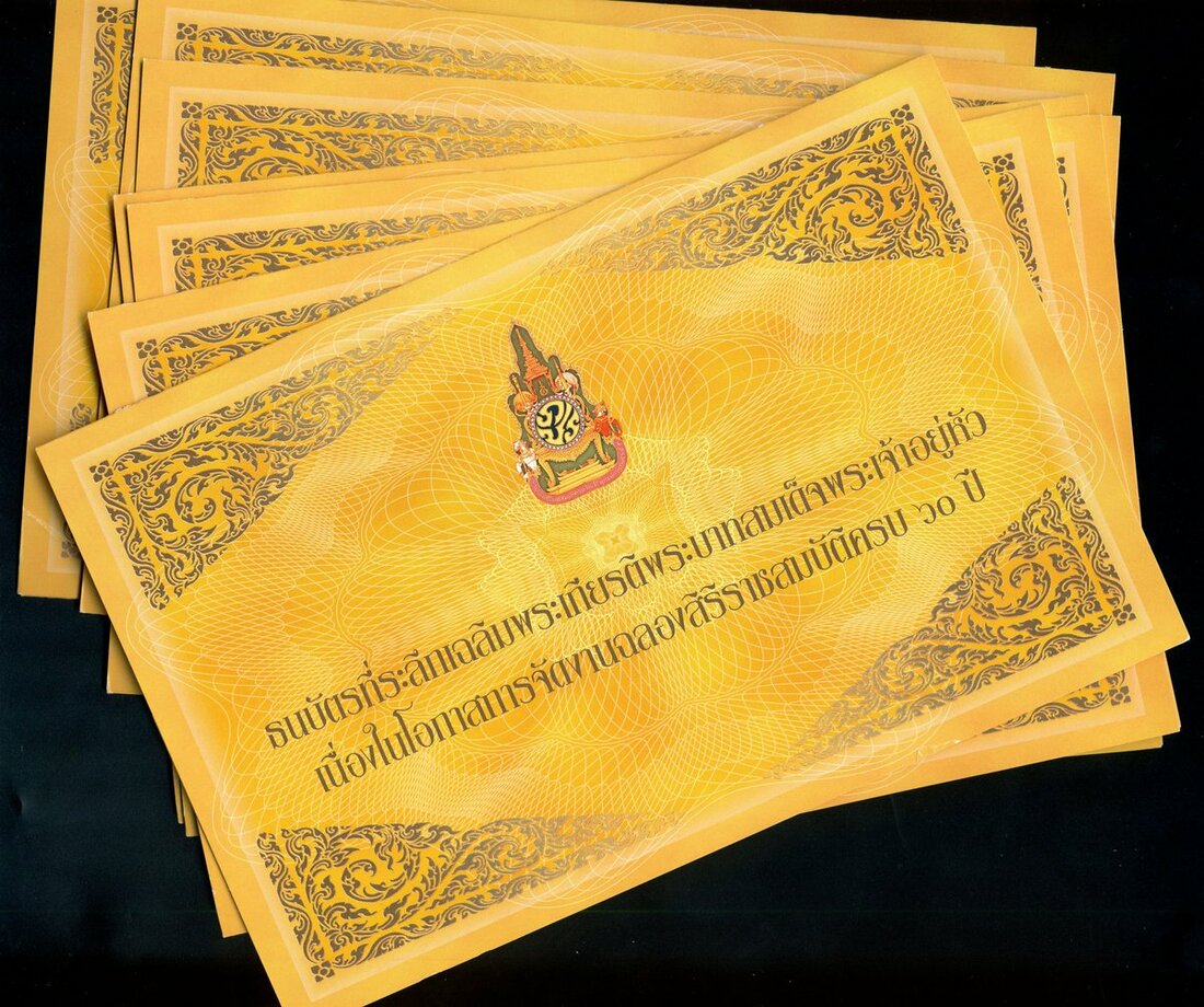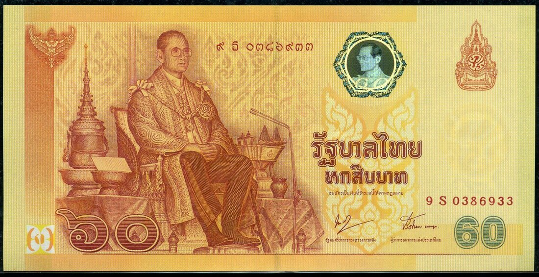 Government of Thailand, commemorative 60 baht (7), ND (2006), (Pick 116, TBB B113a), this note is commemorating 60th anniversary of Rama IX's accession to the throne on 9th June 1946, all 7 come with presentation folder, uncirculated
