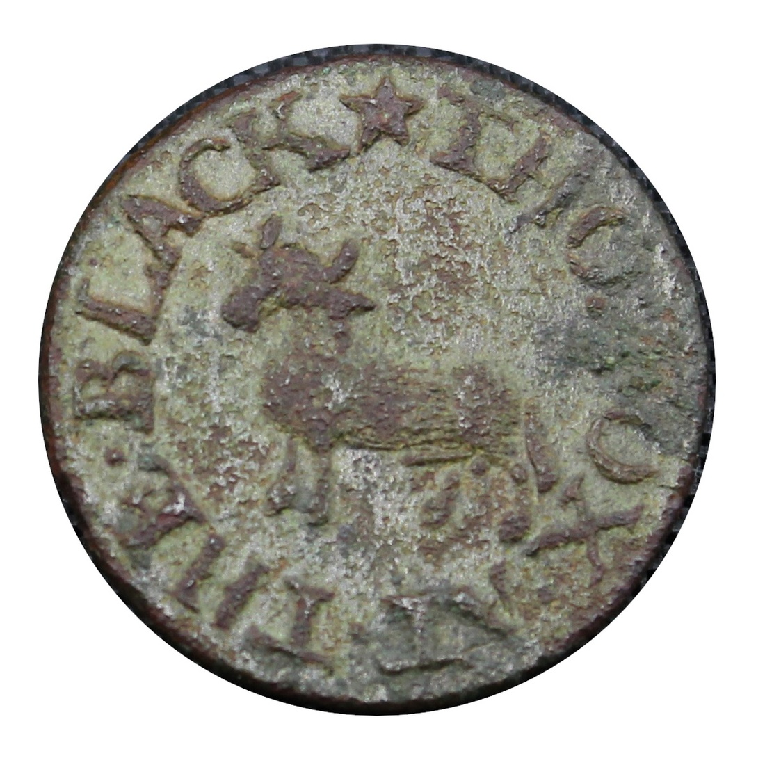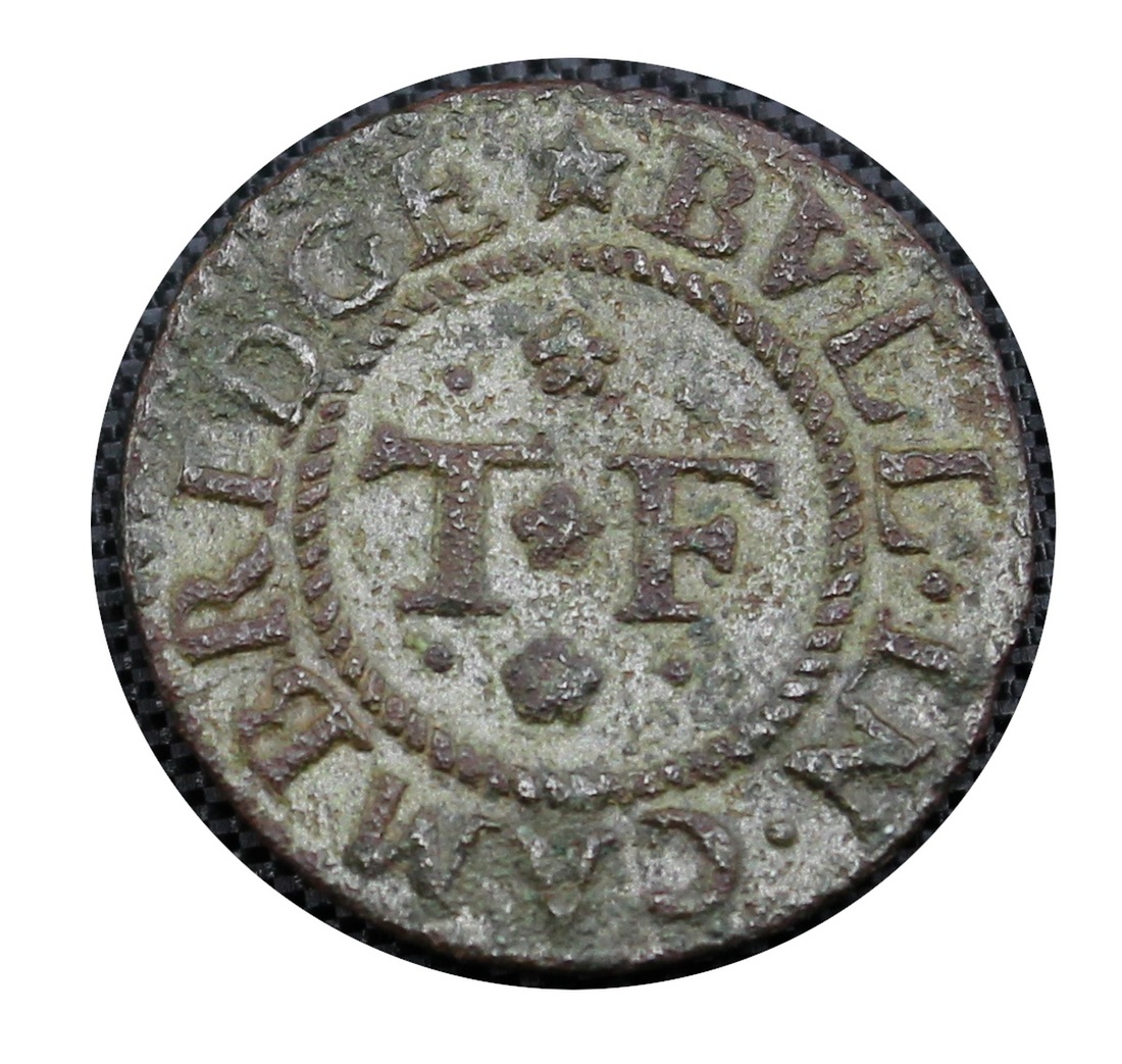 Cambridge, The Black Bull, Thomas Fox (Innkeeper), Farthing, undated († 1693), in copper alloy, 12h, m.m. star, (m.m.) THO • FOX • AT • THE • BLACK, bull standing left, rev. (m.m.) BULL • IN • CAMBRIDGE, *T F* in centre (Cooper [1845] pp. 542; Babington 29; Searle 27; Boyne & Williamson 45; SCBI Norweb I, 417; Dickinson, Cambs 45), loss of surface patination to high points, otherwise very fine, scarce