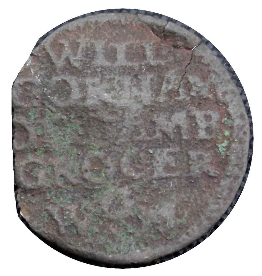 Cambridge, William Gorham (Grocer), Farthing, undated († 1680), in copper alloy, 6h, 'Arms of Leete, Kingston, Cambs', rev. WILL | GORHAM | OF CAMB | GROCER | W G M in five lines (Cooper [1845] -; Babington 31; Searle 29; Boyne & Williamson 47; SCBI Norweb I -; Dickinson, Cambs 47), clipped planchet and somewhat rougher surfaces, otherwise a bold finer, very rare, unrepresented in the Norweb collection