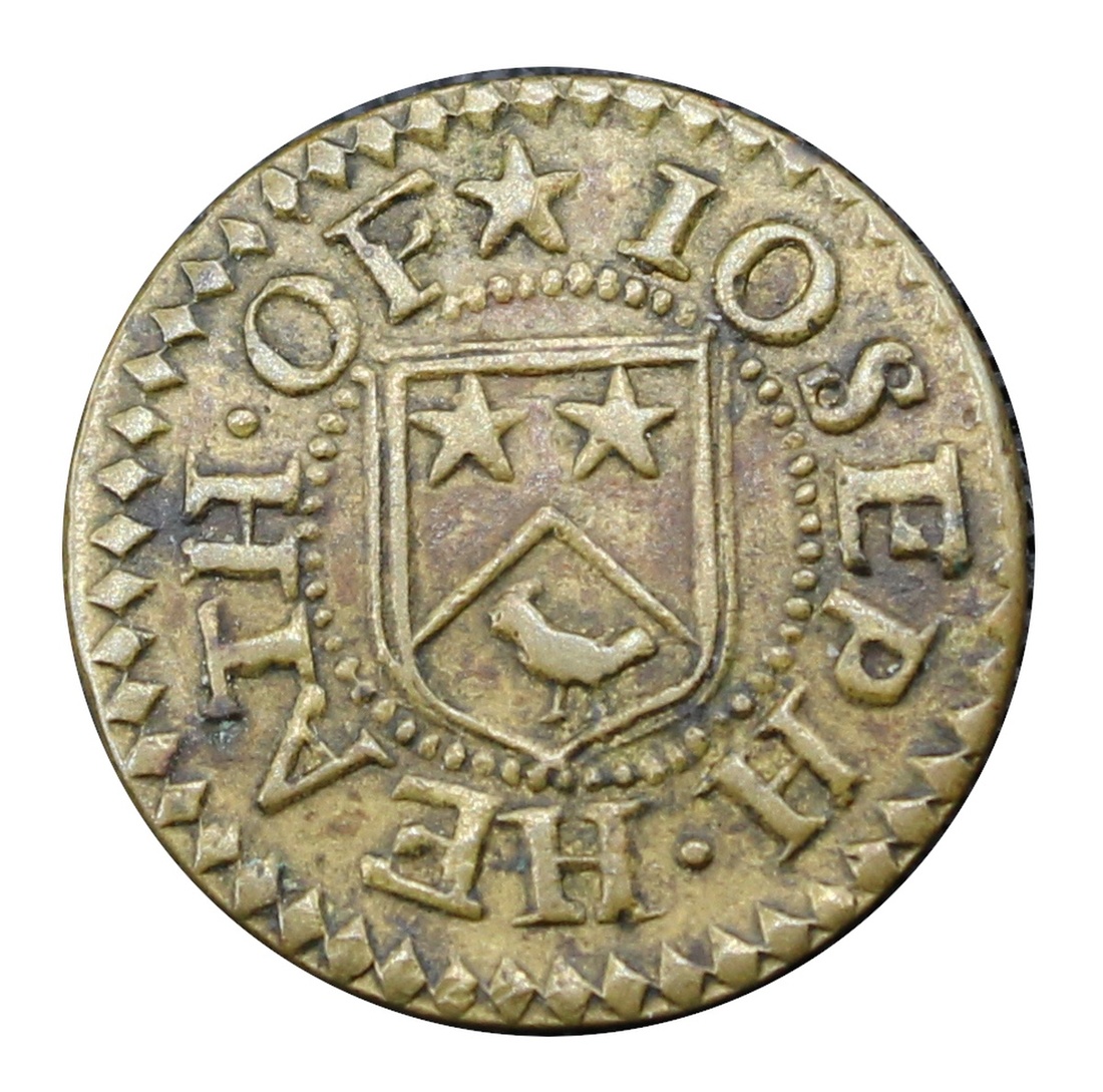 Cambridge, Joseph Heath (Councilman), Farthing, 1666, in brass, 12h, m.m. star, (m.m.) IOSEPH • HEATH • OF, family arms, rev. CAMBRIDGE 1666, *I *H *H in centre (Cooper [1845] pp. 542; Babington 36; Searle 34; Boyne & Williamson 52; SCBI Norweb I, 392; Dickinson, Cambs 52), a pleasing token, good very fine