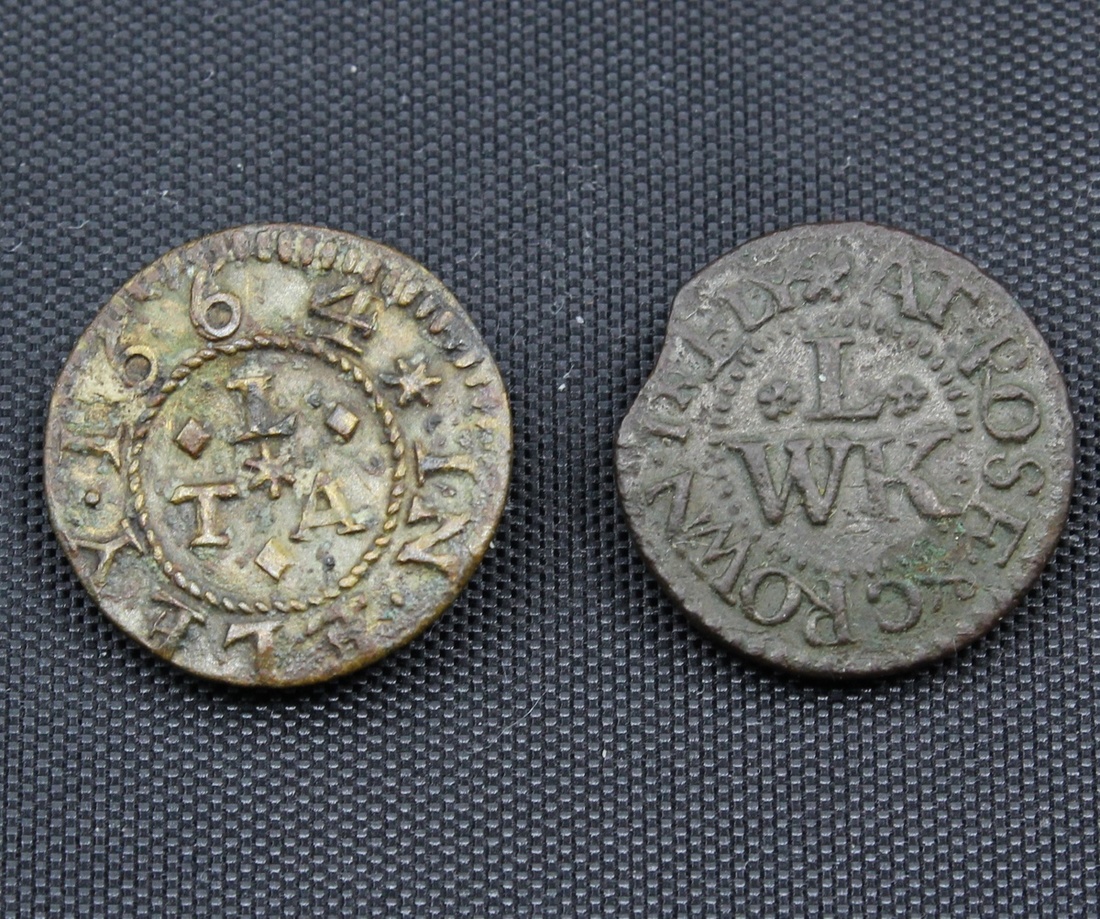 Ely, Thomas Lensley (Platter), Farthing, 1664, (Dickinson, Cambs 110), slightly wavy flan, very fine; also, The Rose & Crown, William Letten (Publican), Farthing, undated, (Dickinson, Cambs 111), a delightful pub token, a pleasingly good very fine, scarce thus (2)