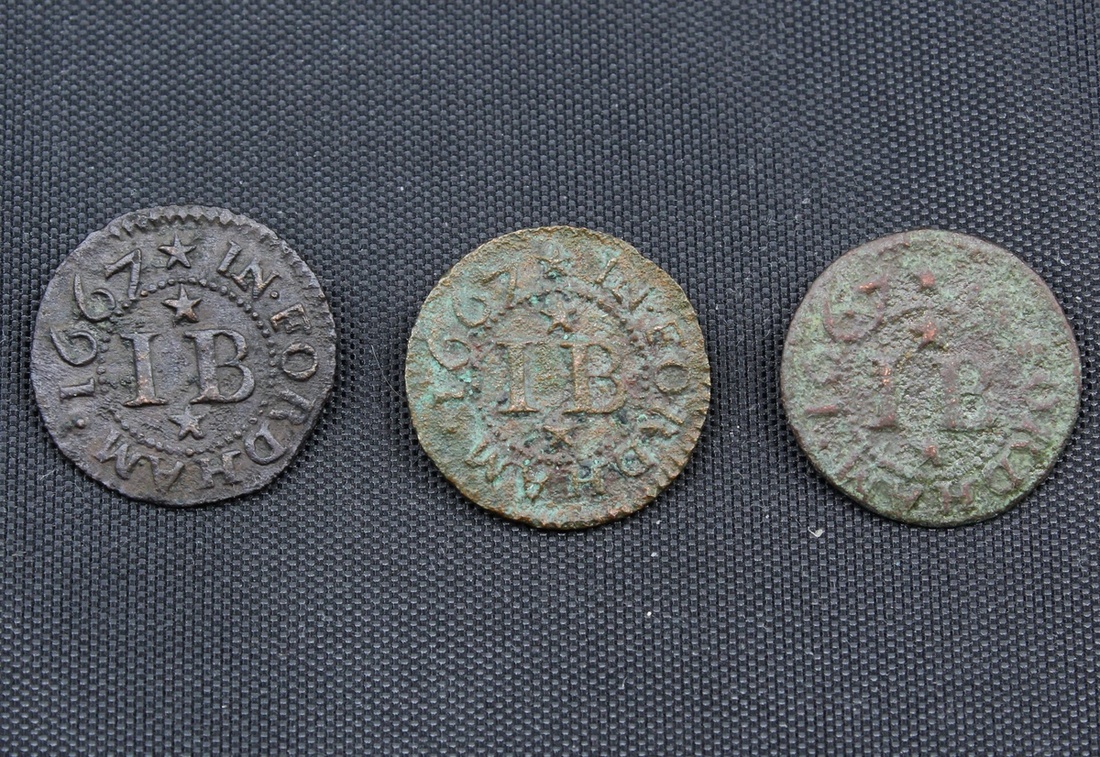 Fordham, John Badcock (Grocer), Farthings, 1667, (Dickinson, Cambs 126 [Norfolk 45]), all with light porosity, otherwise fine to very fine (3)