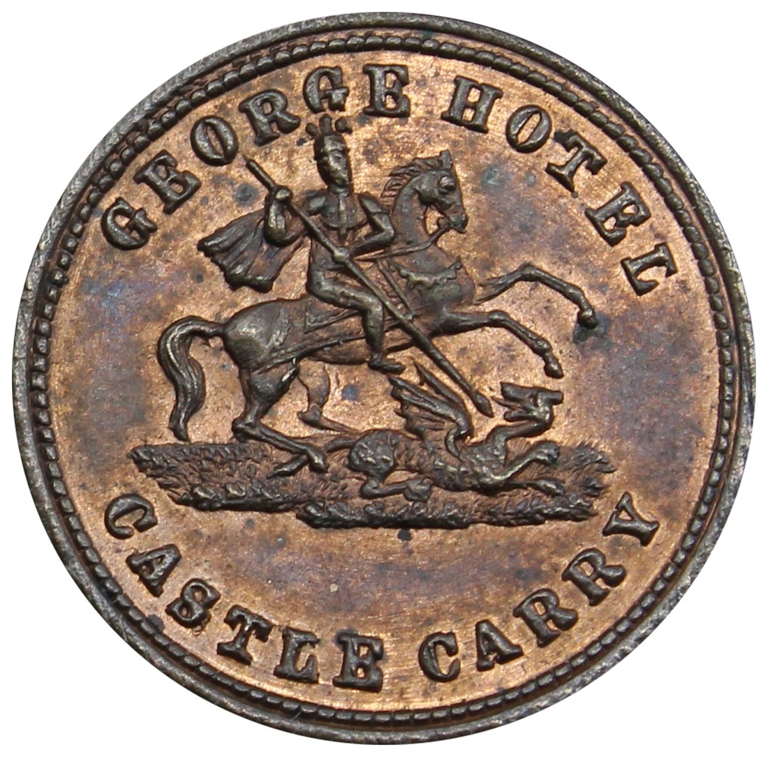 Ireland, Castle Cary, George Hotel (F W Harrold), Threehalfpence, 1850, St George and Dragon, rev. 1½, lustrous, much as struck