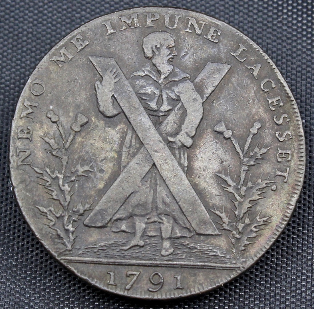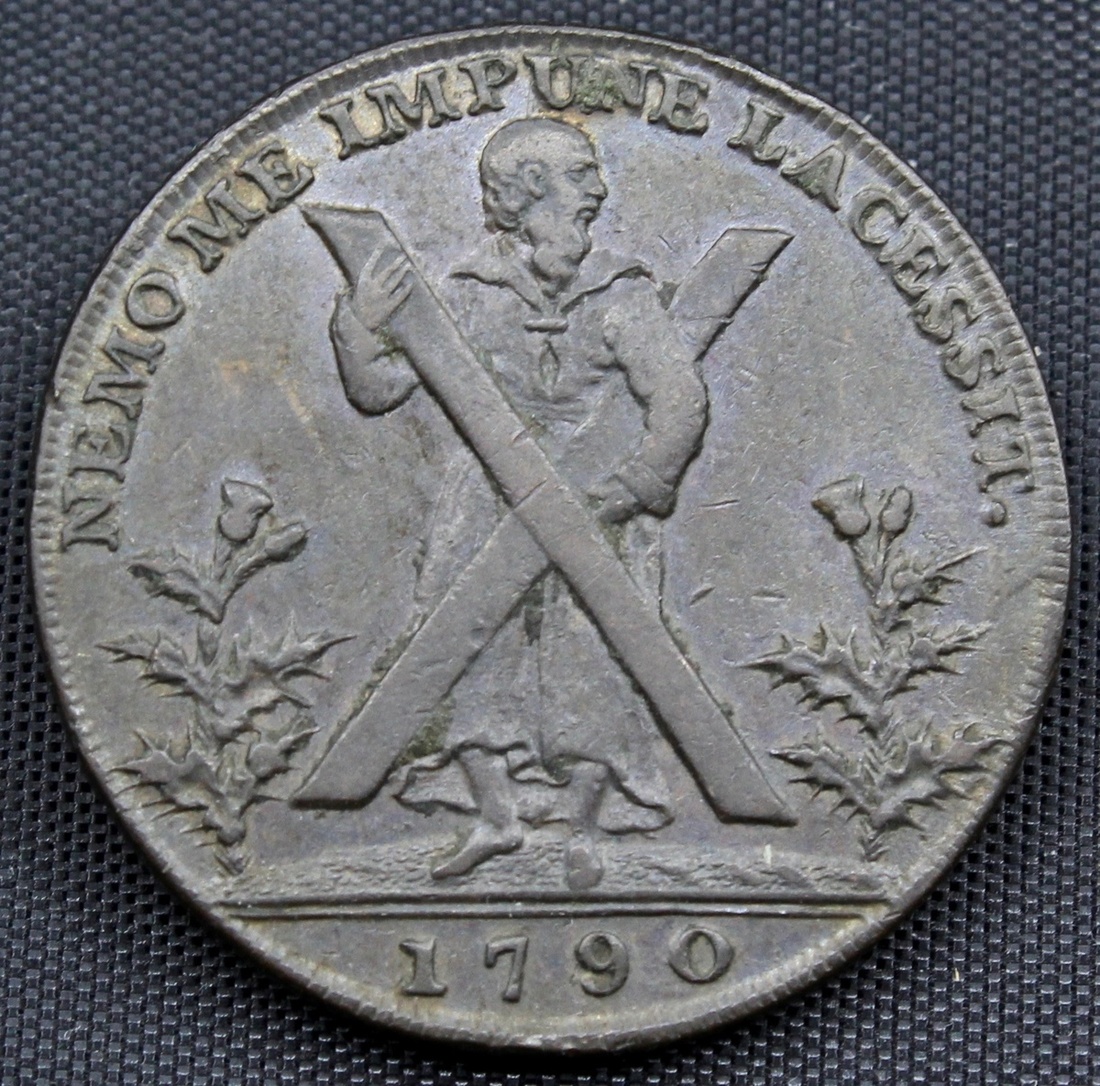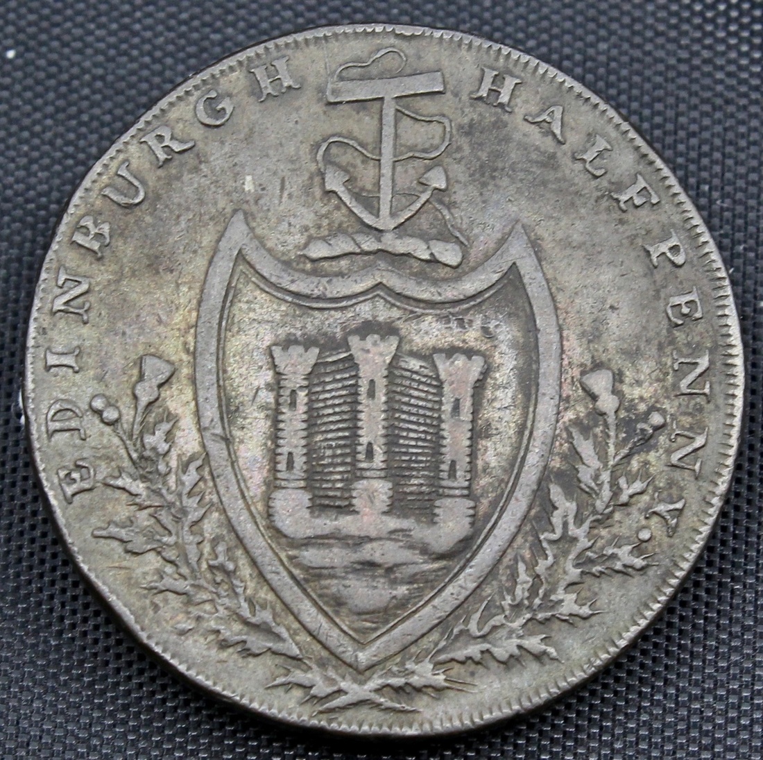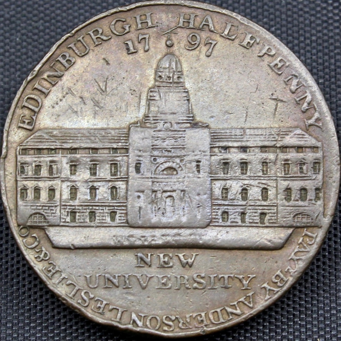 Scotland, Lothian, Edinburgh, Halfpenny Tokens (4), Thomas & Alexander Hutchinson, 1790 (Atkins 20); another, 1791, similar, PAYABLE AT EDINBURGH, GLASGOW AND DUMFRIES (Atkins 31); St. Leonards, Henry Harrison, 1796 (Atkins 15; D&H 20); lastly, Anderson Lesley & Co., 1797, New University (Atkins 5; D&H 7), the last with edge knocks others with contact marks, otherwise generally very fine or better (4)